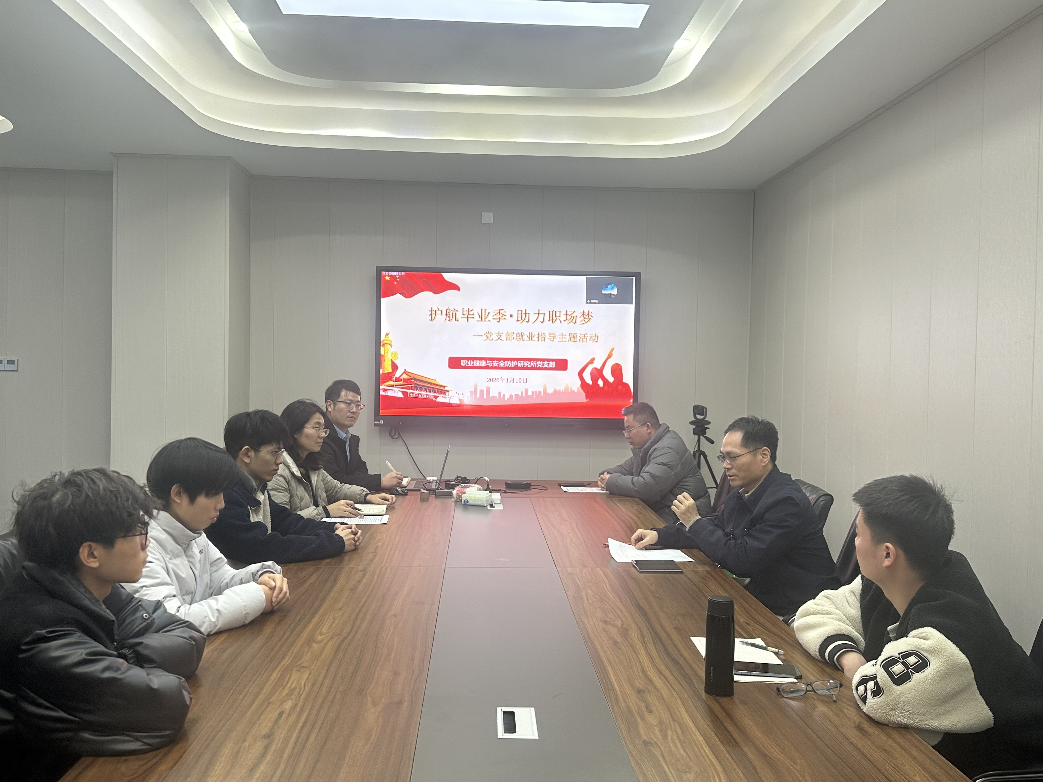 为精准破解毕业生求职痛点难点,赋能专业人才培养高质量发展,1月10日,职业健康与安全防护研究所党支部以“护航毕业季·助力职场梦”为主题,举办就业指导专题活动。研究所所长何新建、党支部书记郑丽娜、职业卫生工程专业负责人朱金佗、职卫2022-1班行政班主任黄荣廷及全体学子通过“线上+线下”相结合的方式参与活动。
