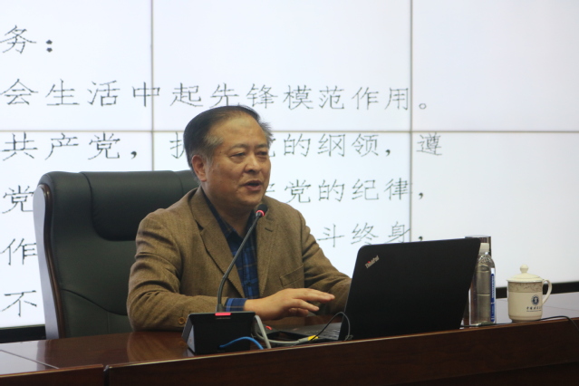 张部长以“在工作生活当中发挥党员模范作用”为题,从党章、党员的职责和党员的要求讲起,回顾中国共产党在百年历史中所付出的代价,分析了当前国际面临的严峻形势,要求我们新时代党员要直面当今挑战,承担党员责任,做到知责识忧。其次,他从中华民族伟大复兴对高等教育的迫切要求讲起,阐述了世界一流学科建设、能源革命、“碳达峰”“碳中和”等形势给予矿业、安全学科的挑战和压力,要求教师党员要有紧迫感和责任感,做到深思善判。他还从马克思主义和中国传统文化的关系讲起,提出工作上要“做事,做对事、做大事、做成事”,努力向钱鸣高、周世宁、薛其坤等院士学习,在注重学习的同时要具有家国情怀;学习上要做到“恒学、博学、思学、用学”,时刻向伟大领袖毛主席学习,要有“活到老、学到老”的勇气,要做到广采博览、善于思考、勤动笔墨,在学习上起到党员的先锋模范带头作用;在生活上,要“爱生活、品生活、懂生活、会生活”,鉴古于今,处理好家庭关系和人际关系做到“明大德、严私德”。
