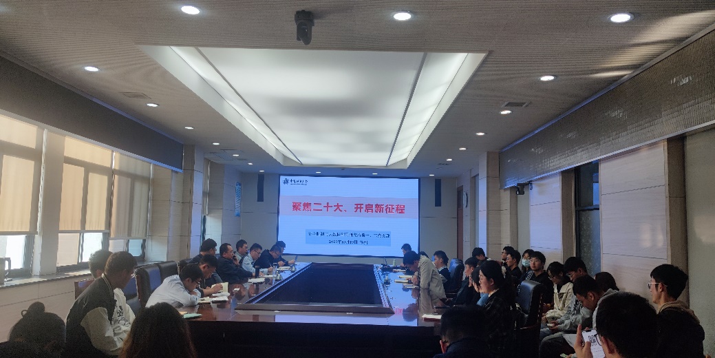 会上,支部书记沈荣喜带领大家学习了习近平总书记在二十大开幕会上作的报告,并对今后一段时间支部的政治理论学习提出了明确的要求。院长王恩元同志作为支部教师党员带领全体党员回顾了共产党过去十年带领全国人民取得的伟大成就,同时对支部今后对党的二十大精神的学习提出了相关要求和建议。