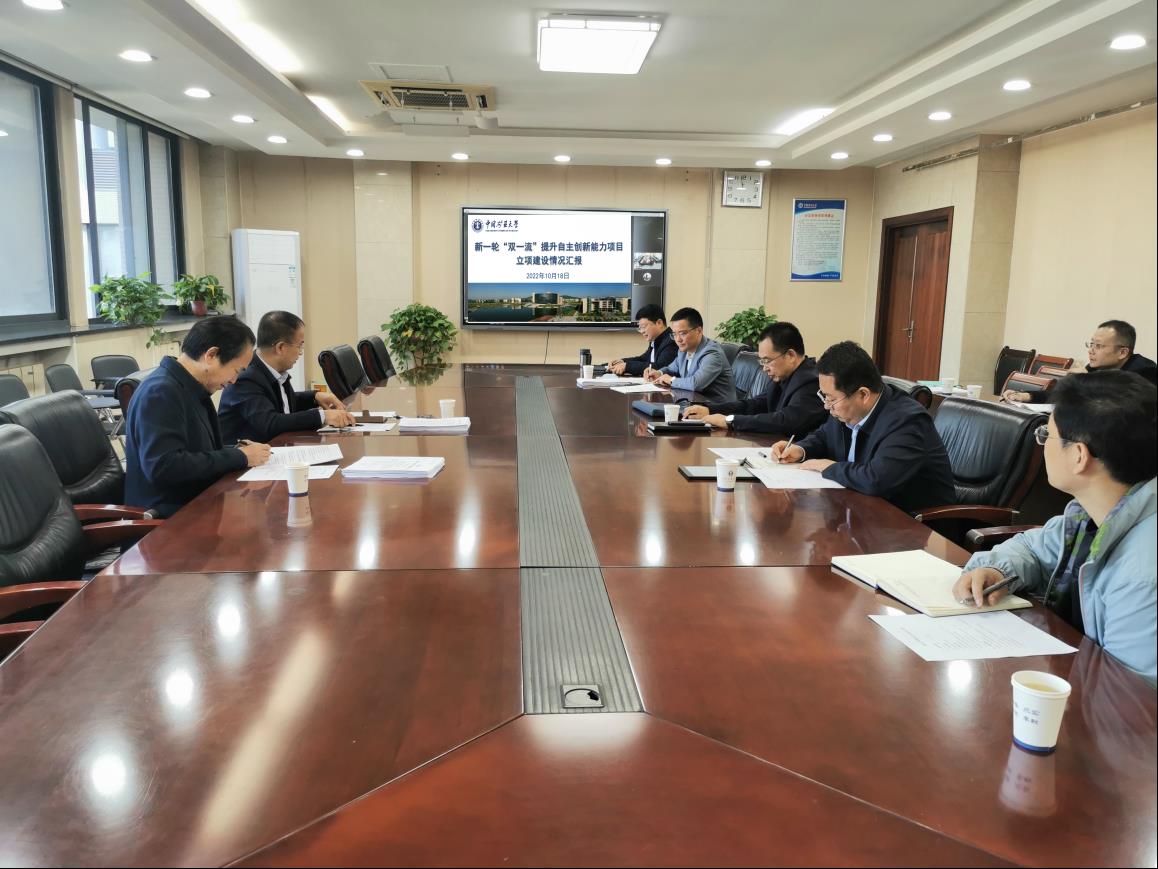 10 月 18 日上午,张吉雄副校长在南湖校区行健楼B401 会议室主持召开会议,专题研究新一轮“双一流”建设提升自主创新与社会服务能力项目启动建设相关工作。校学术委员会学科建设专委会主任汪云甲,学科群首席科学家张吉雄、王恩元,学科建设处处长秦波涛、副处长王鹏,科学技术研究院副院长吴健波,学科群牵头学院副院长王亮、马立强,一流学科建设办公室主任周天建,学科群建设办公室秘书吴冬梅、孙磊、倪涛涛参加会议。
