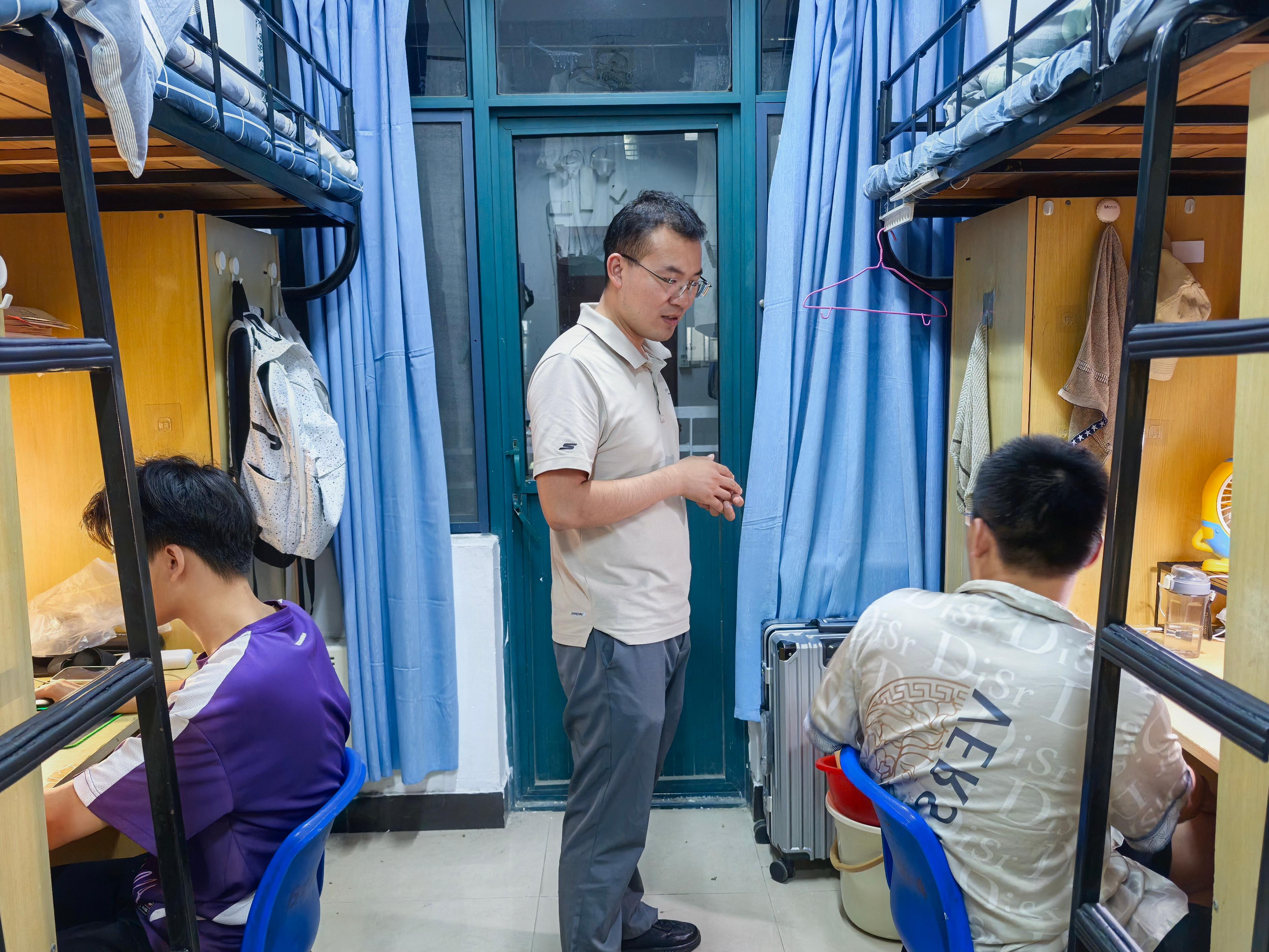 新学期伊始,为深入了解各年级学生返校动态,全面深入了解2025级新同学情况,帮助其更快地适应大学生活,在全院范围内营造整洁安全、积极向上的学习生活环境,由学院党委副书记邵波带队,学院全体辅导员深入各年级学生宿舍,开展学期初集中走访检查工作。
