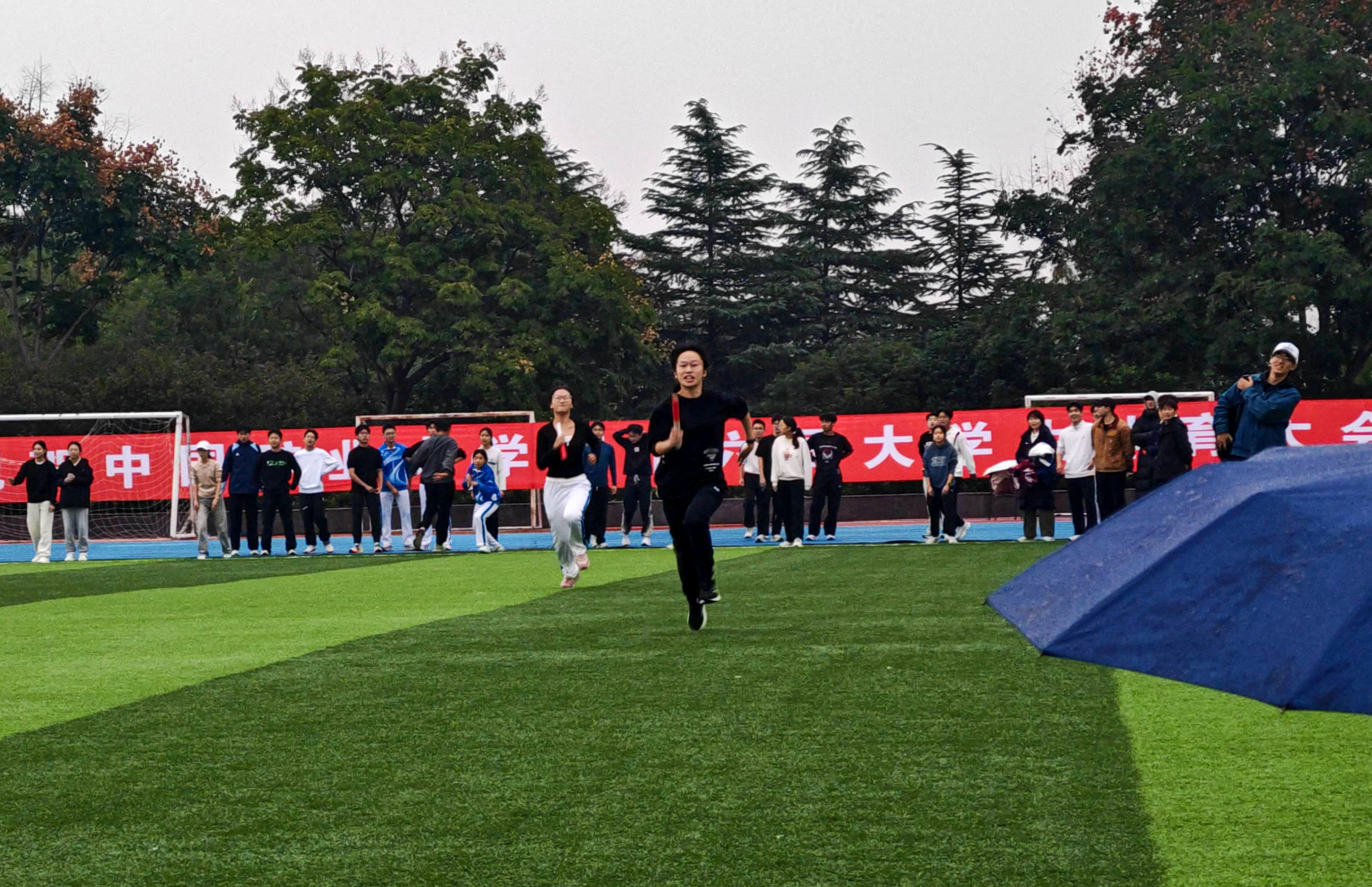 学子仍以饱满的热情投入各项赛事,在雨后的赛场上展现出良好的竞技状态和团队精神。