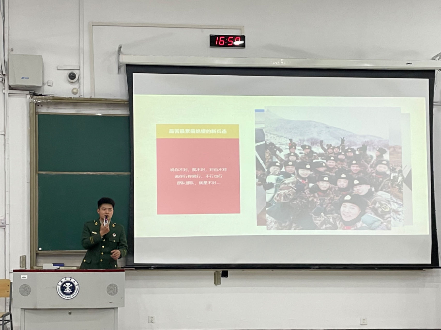 报告会最后刘世通老师提出三点希望:一是希望退伍学生们能够在今后的学习生活工作中,继续保持发扬人民军队的优良传统和作风纪律,敢于直面困难,战胜困难;二是希望退伍大学生能够将军人情怀和精神品质融入学习生活中,掌握扎实的专业知识,在学业上再创佳绩。三是希望安全学子能够以优秀退伍大学生为榜样,学习他们争当时代先锋,让青春在追梦中成长,在为国奉献中闪光。