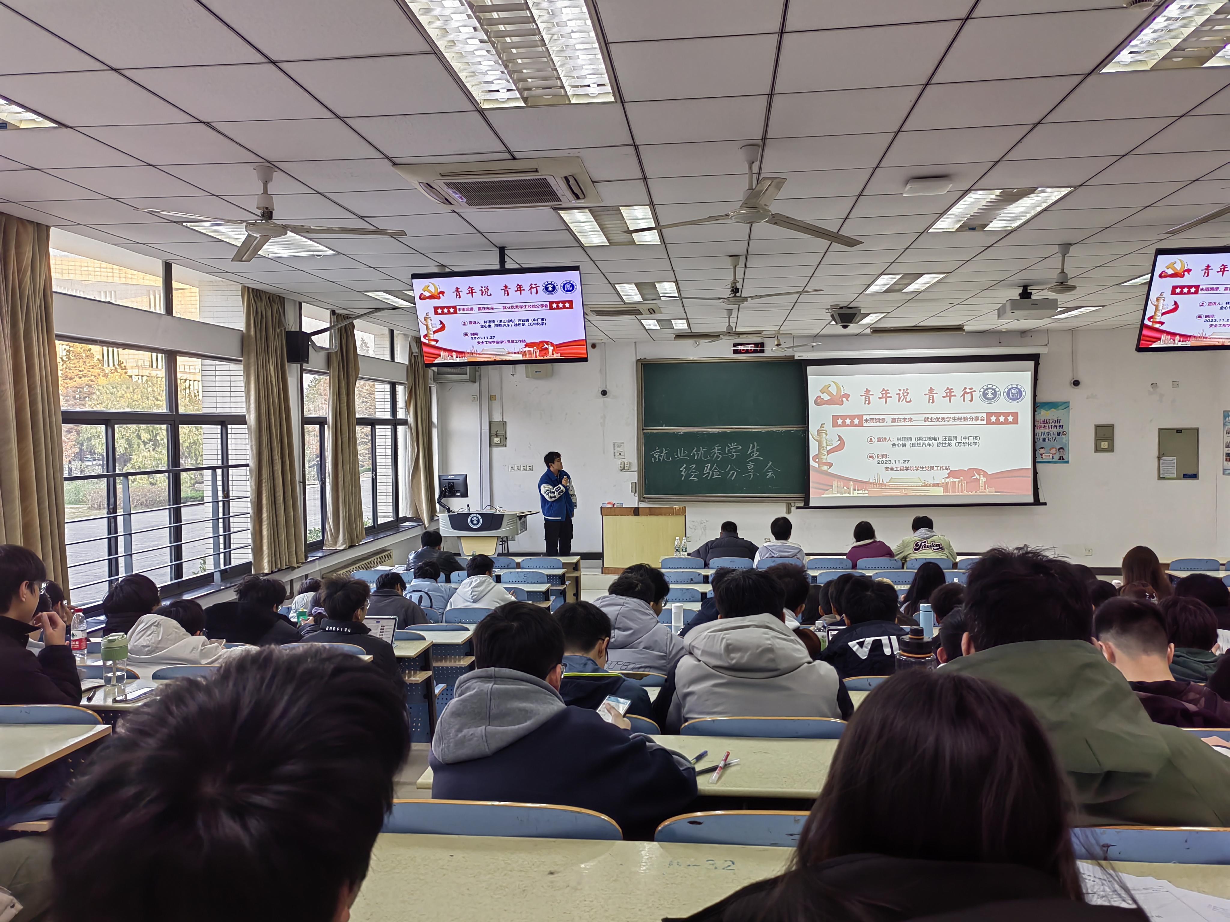 林建楠讲述了自己大三选择考研到大四决定就业的原因,提醒同学们审视自己考研的初心,是真正对科研有一颗热爱之心,亦或是想要提升自己还是迷茫的随波逐流;林建楠还细致讲解了求职简历的制作包括从教育背景、实习经历、项目经历、校园经历、荣誉奖项、自我批评等方面编写。汪官腾解读了目前就业形式,分析了自己收集的几所优秀公司数据,教各位同学如何寻找秋招信息,打破信息差。金心怡就“女生就业”讲述了自己的求职经历,告诉准备就业的同学们要树立求职自信,提前做好求职准备,避免自我怀疑和精神内耗。徐世龙重点介绍了外企和国企的面试和求职的区别,强调了学好英文的重要性,分享了要如何做好就业意向单位的抉择与取舍。讲座最后,就业优秀代表鼓励与会同学在大三学年要继续努力学习,拿到优异成绩,利用寒暑假的实习锻炼自己的能力,最后一定能找到自己心仪的工作。