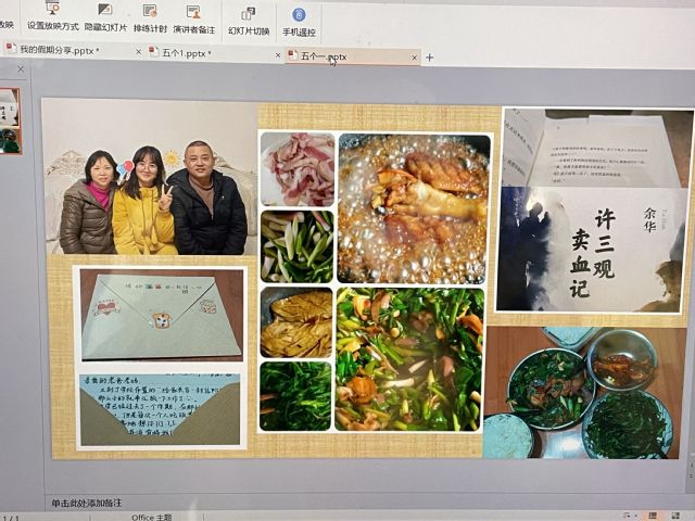 本次活动中的“五个一”具体是指:在寒假期间,拍一张全家福,为父母做一次饭,给父母写一封信,读一本书,做一次假期分享。在开学后,各班相继召开了“五个一”假期分享主题班会,同学们依次向大家展示记录自己寒假生活的PPT,分享自己丰富的假期生活。有的同学分享了自己的读书心得,有的同学记录了与父母的温情瞬间,还有的同学为学会做人生中第一道菜而自豪。班会的最后,以不记名投票的方式,同学们纷纷为表现优异的同学投上了宝贵的一票,并将结果统计汇总后,按比例评选出最终获奖名单。至此,本活动圆满落幕。