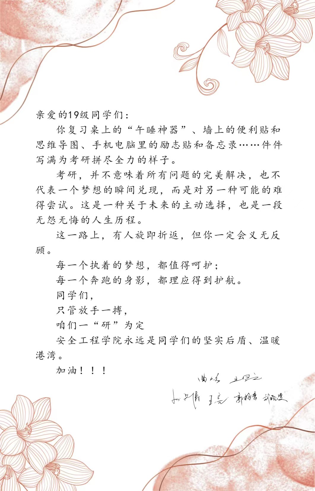 一直高度重视就业工作,尤其重视学生考研等高质量就业。学院多次举办考研学子座谈会,学院领导深入毕业班学生宿舍,与考研学子沟通交流,解决他们学习生活上的困惑。此次慰问温暖活动的举行,体现了学院对考研学生的关心和重视,缓解了考研学生的备考压力,增强了考研学生的考试信心,推动学院良好学风的建设与发展。