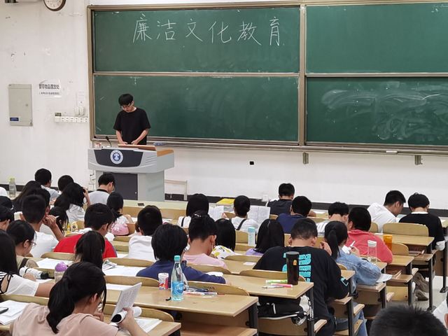 在博4-B101召开大学生廉洁文化教育大会。本次活动由2020级辅导员陈劲松主讲,2020级新生参加。