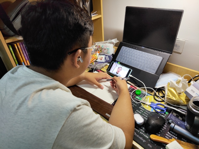 学生在宿舍观看直播