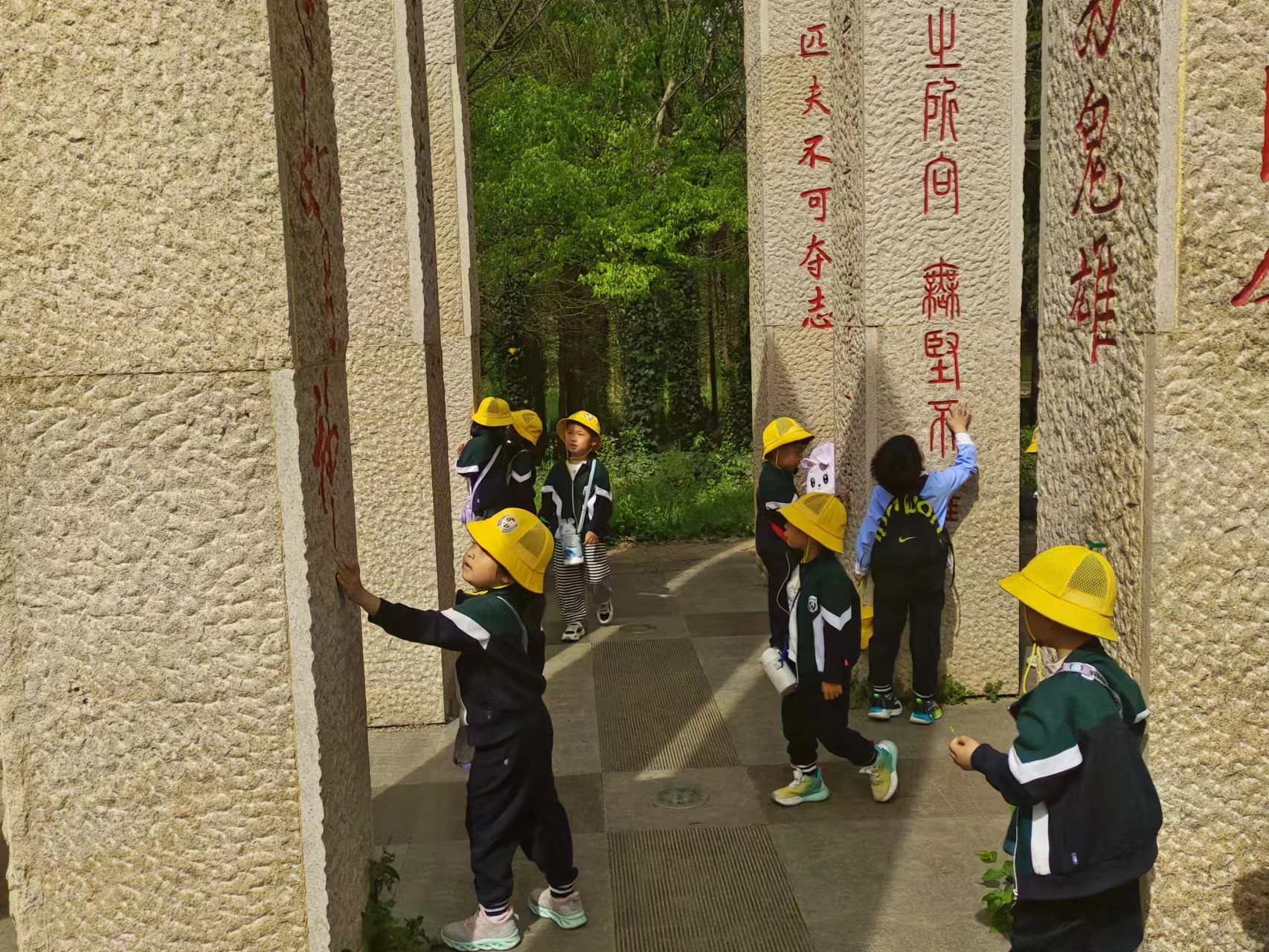 学生志愿者、相关工作人员及游学的小朋友们在东门集合。集合完毕后,包子漫画