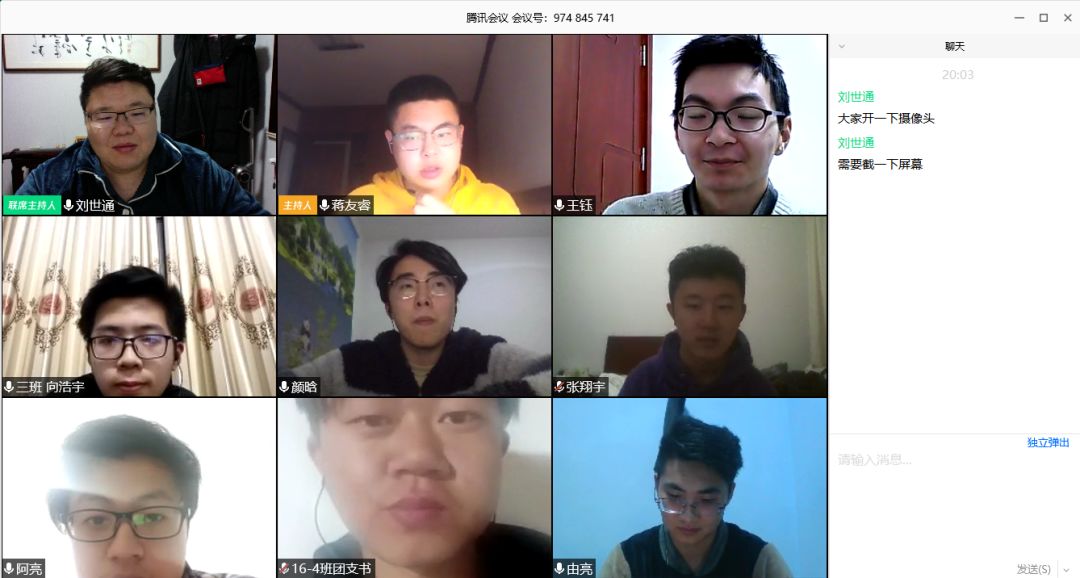 统一思想,了解动态,坚守在家。本次网上例会,不仅促进了各团支部的交流,同时也使团支部对近期团日工作有了深入理解和认识,让这个宅家生活变得更加丰富充实。防控疫情,众志成城。我们坚信,病毒终会被战胜,春天如期而来!