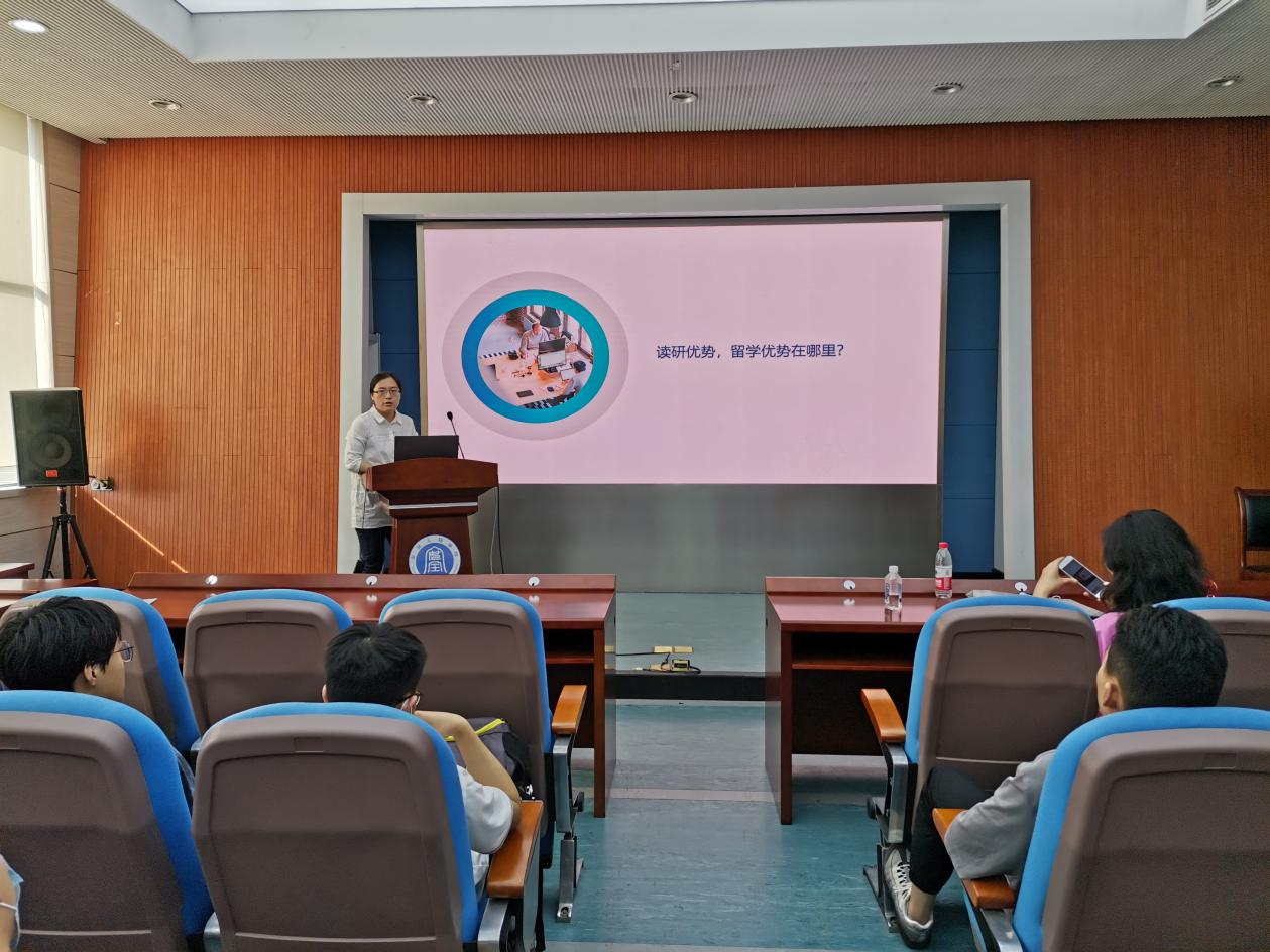 因事未能到场的16级樊祯、张啸宇两位主讲人的经验由主持人转述。樊祯分享了他出国留学的心得体会,即在明确自己出国留学的目的下找到适合自己的国家和学校,并且要提前做好准备。张啸宇提到:在准备出国材料时如果对流程、文书写作技巧不甚了解或时间较仓促,建议找中介,在写个人陈述、推荐信等材料时,重点在于挖掘自己本科阶段经历和未来专业方向的联系。另外对待学校面试要足够重视。
