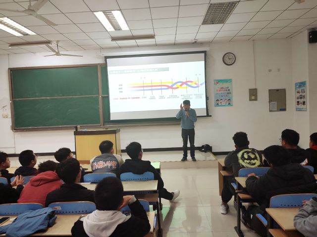 首先,全体学生填写《中国大学生心理健康测评表》,对最近一个月的心理状态进行了反馈。胡泊老师为大家开展了主题为“大学生常见心理问题与心理咨询”的心理健康教育。胡老师从自己的工作——心理咨询师引入话题,介绍了心理疾病及其主要症状。胡泊老师幽默风趣的话语让同学们在轻松的气氛中接受心理健康教育。最后,胡泊老师提供了包子漫画