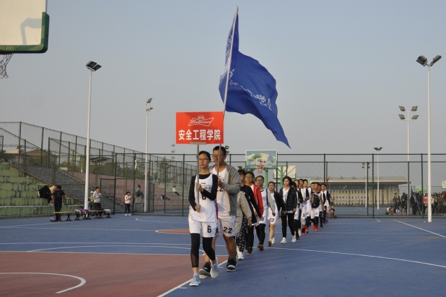 代表队位于第八个,在运动员入场完毕后,体育学院副院长许彩明为开幕式致辞,许彩明副院长希望同学们积极参与,在篮球场上一展雄姿,纵横驰骋,以更高、更快、更强的拼搏精神,赛出风采,赛出风格,赛出友谊,为学院争光。随后,裁判员代表进行宣誓。最后,是由赞助商百威集团啦啦操队带来的激情四射的啦啦操表演。