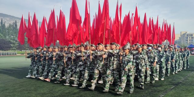 10月17日,新生军训第11天。在军训的中后期,为了使得军事技能训练更加合理高效,提高大家各方面的能力,并在最终的总结大会上有出色的表现。同学们被分为方阵队列、匕首操方阵、红旗队、特色方阵等几个部分进行集中训练。