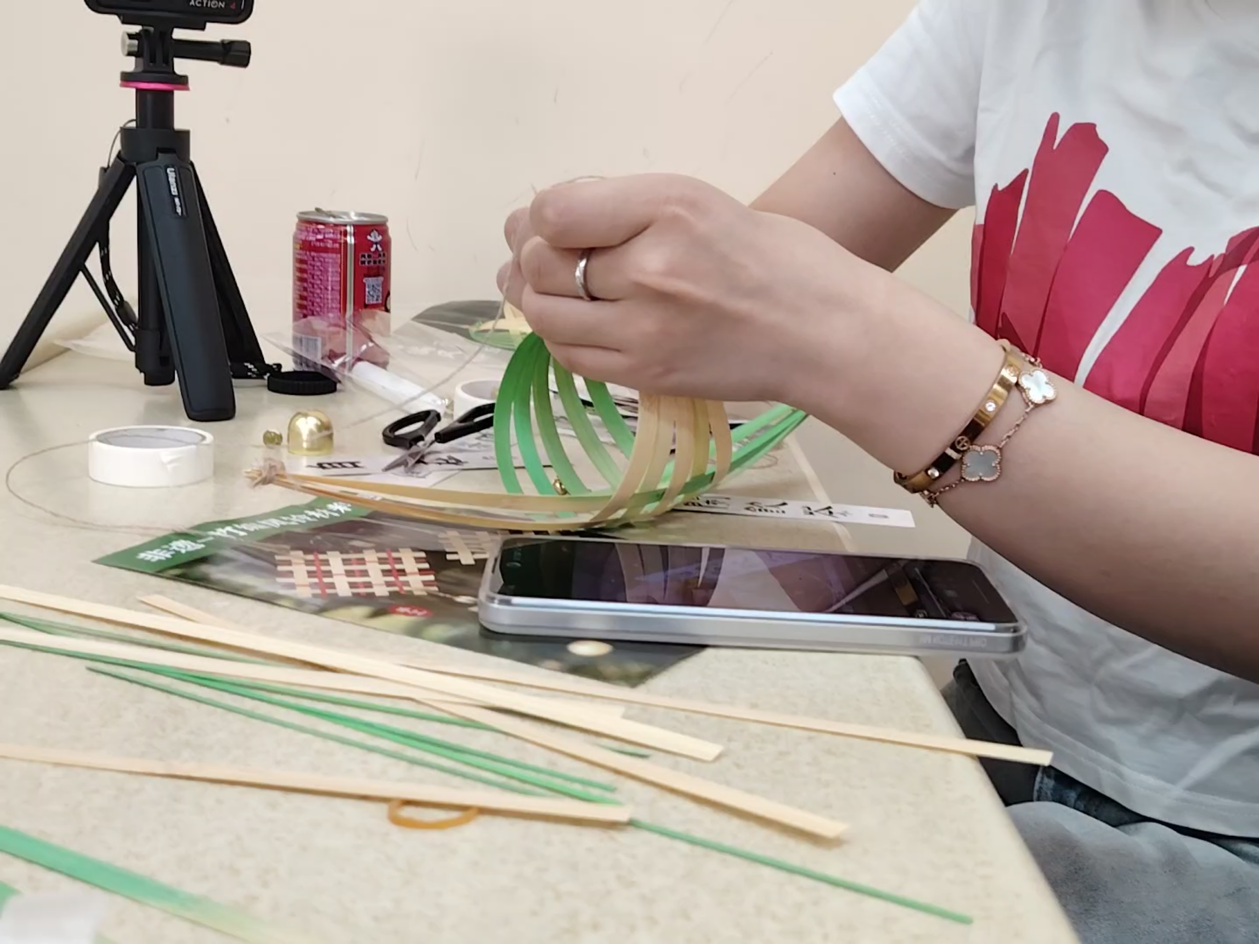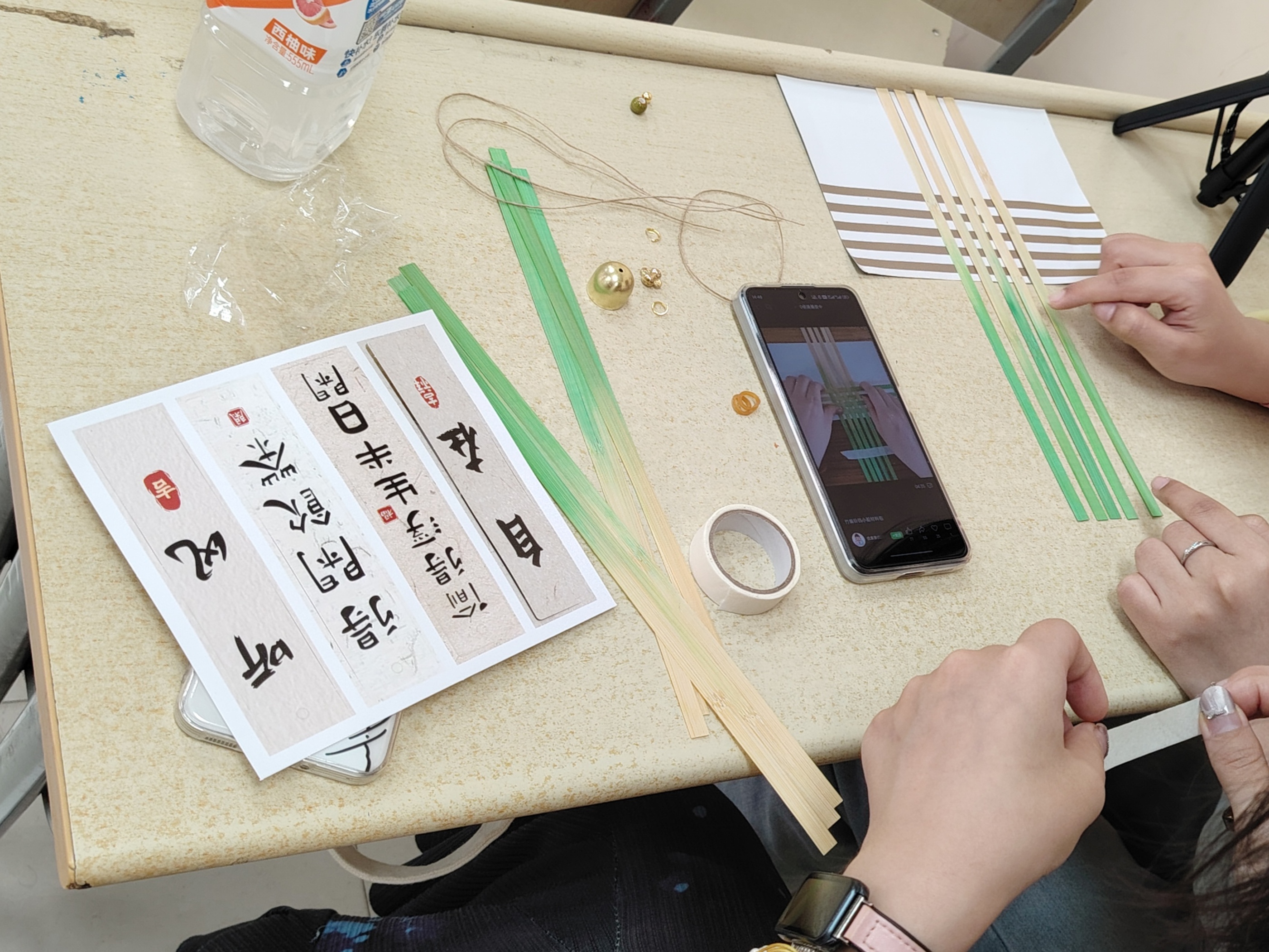 本次活动以“非遗竹编”为核心内容,以“美育浸润计划”为框架,将竹编制作体验与创意摄影相结合,通过沉浸式互动激发学生的创造力与协作力,引导同学们感受匠人精神,在动手实践中感悟非遗文化的魅力。活动吸引了全体同学的广泛关注和积极参与。在主持人为大家介绍完竹编文化的历史和匠人精神后,同学们现场领取材料体验竹编制作,随后通过镜头捕捉竹编作品的魅力,创作出兼具艺术性与文化内涵的摄影作品。