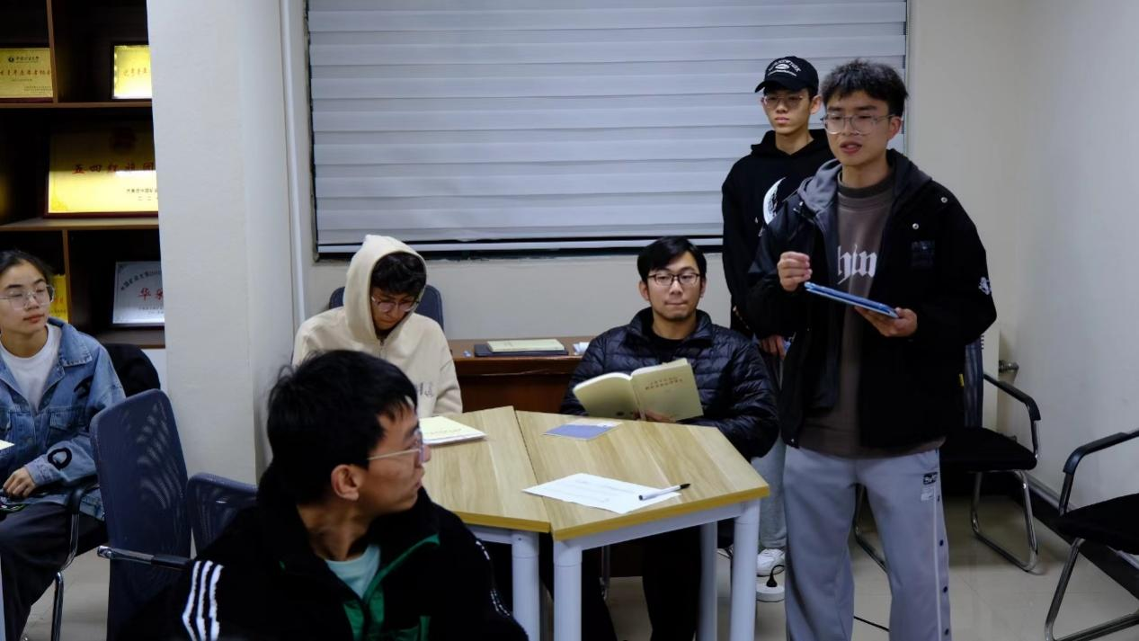 活动开始,许正阳同学对本次活动的主题、内容及活动流程做了简要的介绍。在同学们大致了解活动流程后,布置了阅读任务。首先,同学们以小组为单位阅读了《习近平总书记教育重要论述讲义》,各组都做了读书笔记并进行了激烈的小组讨论。同学们表示,习近平总书记关于教育的重要论述,内涵十分丰富,贯通其中的“四个自信”,对同学们自身的成长教育具有十分重要的意义。小组阅读结束后,知行社为大家播放了《新闻周刊》节目,让同学们在学习书本知识的同时关注时事政治,把握时代动向和社会热点。许正阳同学表示,读书分享活动是学院学生党站的特色活动,它不仅培养了同学们的阅读习惯,还激发了大家学习党的理论知识的热情,意义丰富。同学们积极参与讨论,互相探讨,活动收效良好。最终,活动在大家的总结汇报中圆满结束。