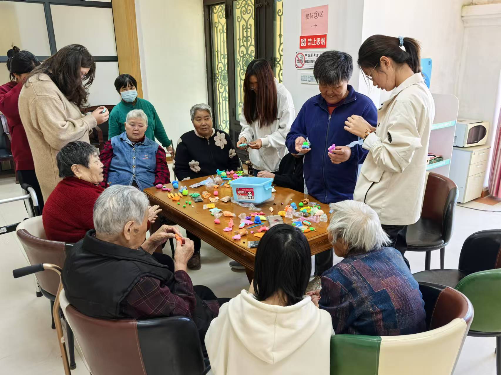 活动期间,志愿者们不仅学习并运用扭扭棒为老人编制手环、花朵,还与老人一同使用橡皮泥捏制小南瓜、花朵等手工艺品,并共同参与击鼓传花、扑克牌等游戏,陪伴老人欢度国庆和重阳节,共同唱歌、表演才艺。志愿者们通过心理疏导、手工制作等环节,耐心倾听老人心声,提供情感支持,帮助缓解孤独与焦虑。老人们在手工创作中锻炼手部动作,享受协作与交流的快乐。特别值得一提的是,11月3日的心理疏导主题活动,为老人们提供了专业的心理健康支持。这些丰富多彩的活动不仅丰富了老人的精神文化生活,更为他们的心灵带来了慰藉。