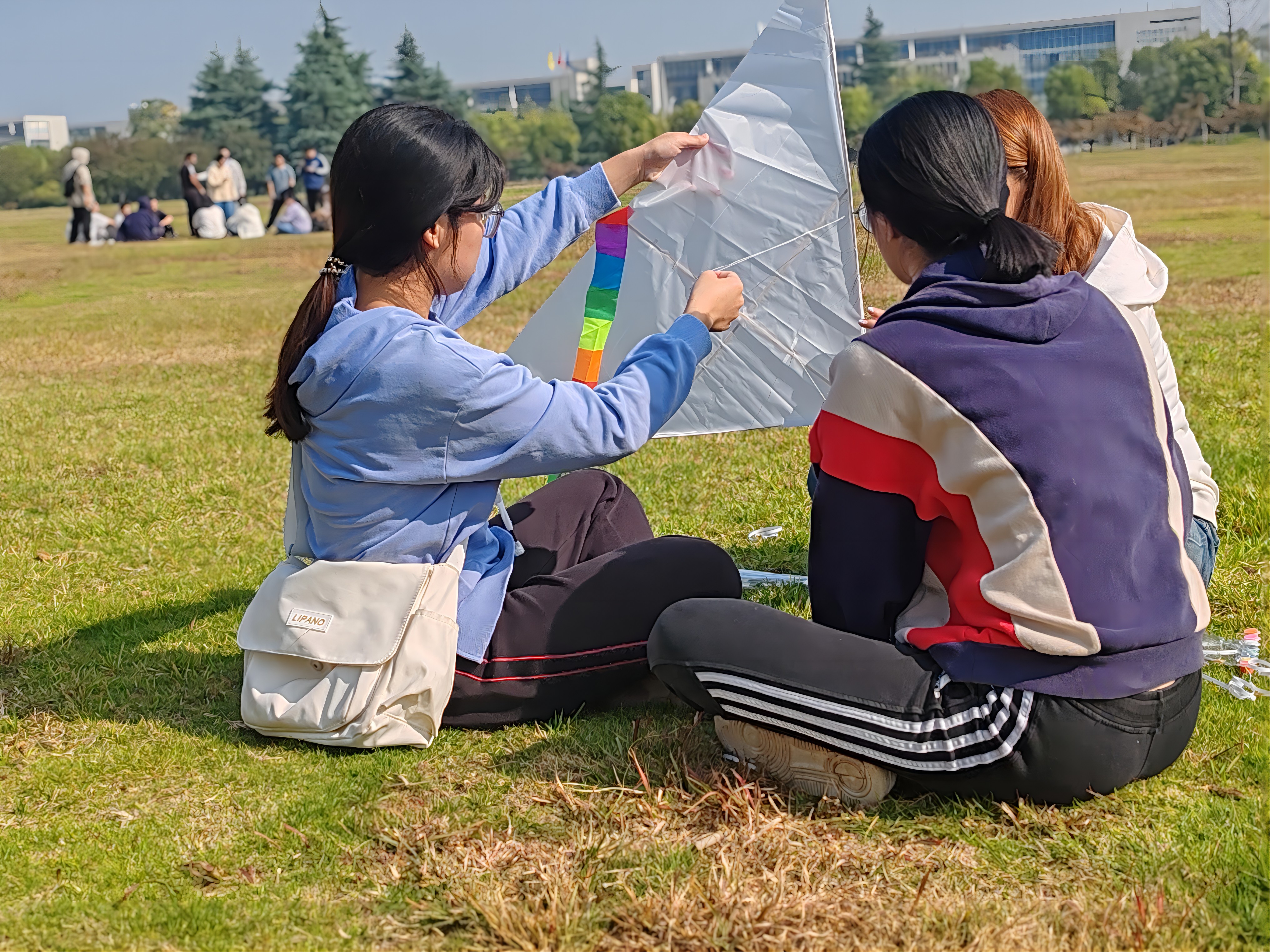 活动伊始,同学们分组进行风筝绘制。各小组成员发挥特长,分工合作,如火如荼地开始风筝的制作。同学们天马行空地构思创作主题,精心地挑选色彩,细腻地绘上图案,一只只精美的风筝很快被创作出来。随后,同学们将制作好的风筝向评委展示,由评委进行评定。接着,同学们陆续放飞手中的风筝,评委根据风筝的创意度、美观度、在空中的飞行时间以及是否稳定灵动等方面进行综合打分,最终评选出优秀作品。
