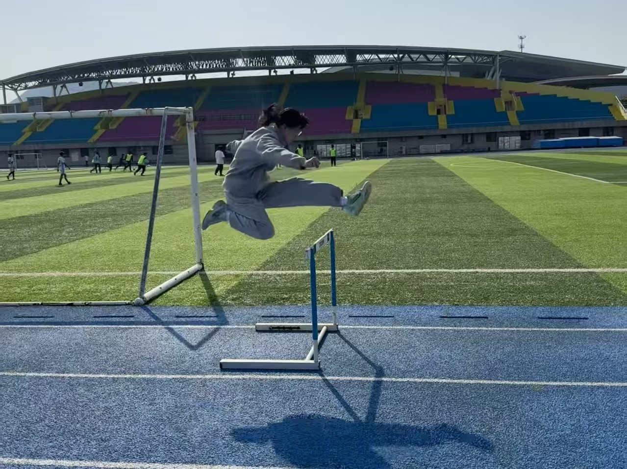 体育部带领参加运动会的同学到第一运动场训练。田径场上,短跑选手在起跑线反复练习爆发力,跨栏运动员腾空而起的弧线划破春日晴空,通过系统性训练逐步调整至最佳状态。与此同时,二运篮球场上,包子漫画