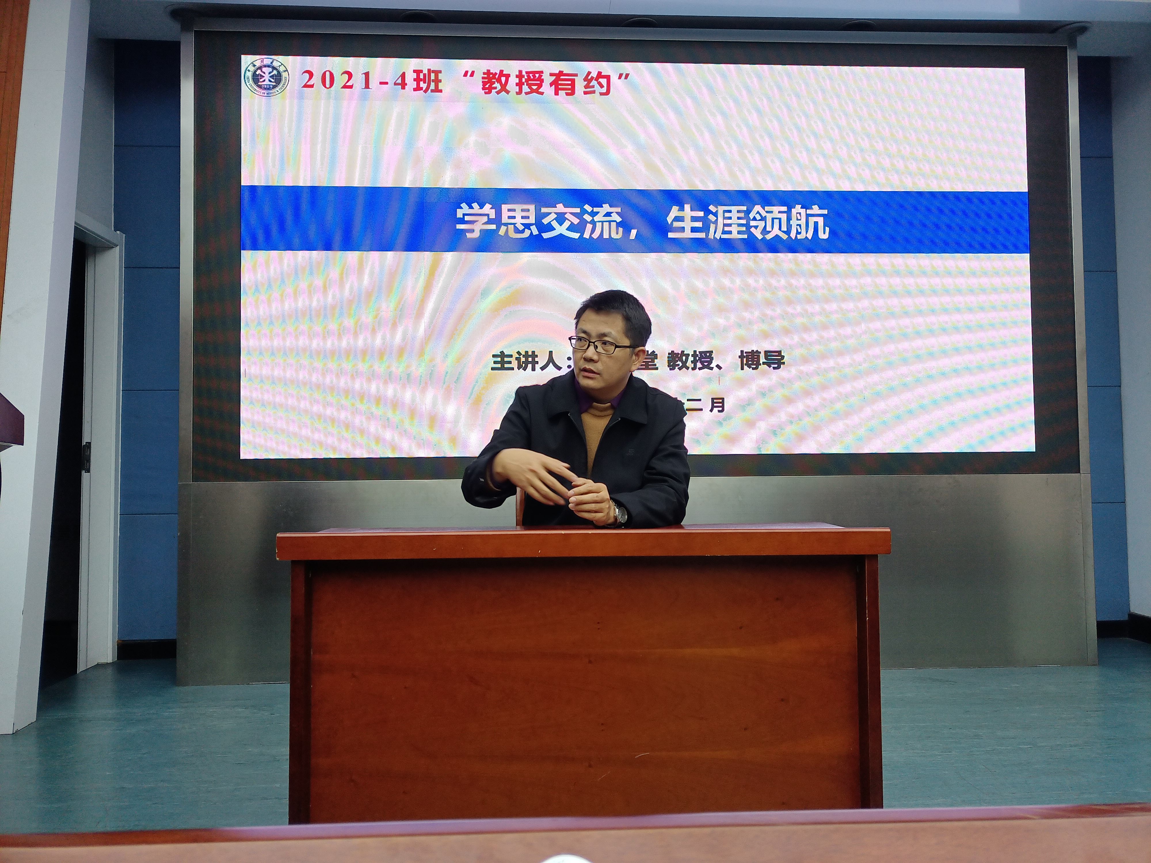 于矿业科学中心A200开展第一百零六期“教授有约”活动,王和堂教授受邀主讲,2021级4班全体同学参加本次活动,行政班主任史全林主持本次活动。