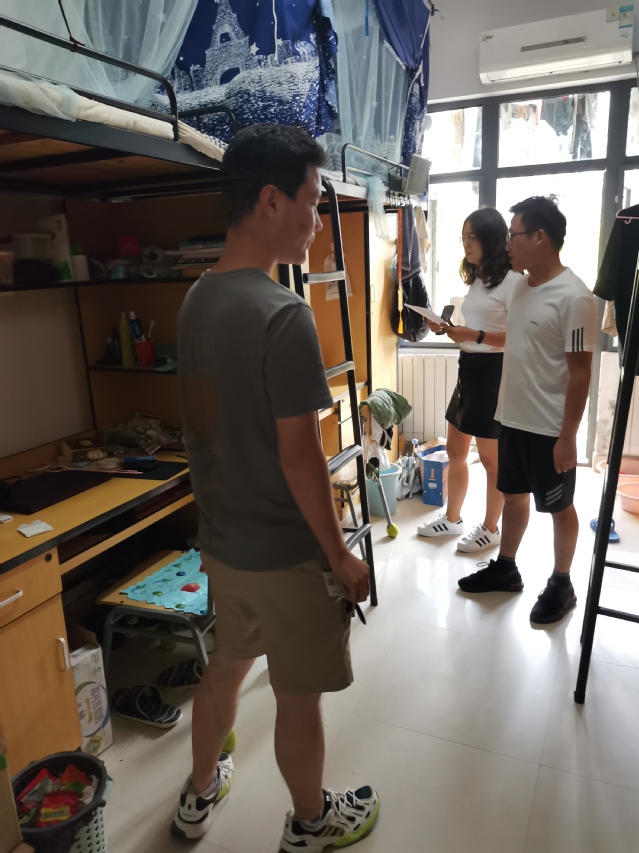 辅导员排日代姆、吕鑫、王蓉、莫达对梅三B区和研三楼部分宿舍进行了全面检查。