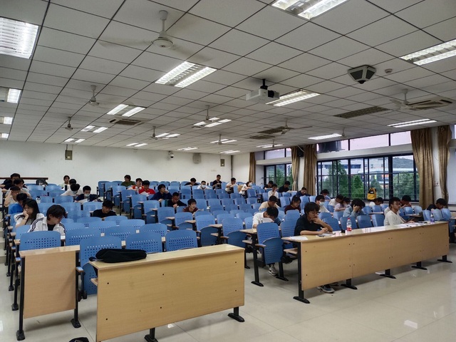 开考前半个小时,同学们有序进入教室签到打卡并在监考人员的监督下将手机统一上交至讲台,做好考试准备。晚上7点整,大物模拟考试正式开始,监考人员分发试卷,全体同学进入考试状态。考试过程中,同学们认真作答,合理地安排考试时间和答题顺序,自觉遵守考试纪律,诚信作答;监考人员分别位于考场前后,严格监督考场秩序,确保考试公平公正,考试结果真实可信,尽最大努力模拟最真实的考场环境。8点40考试结束,全体考生待监考人员收齐试卷并清点完毕后有序离场。本次考试全面覆盖所学内容,对其中的重要知识点做出针对性考察,为同学们明晰考试题型,巩固知识体系提供了方向。