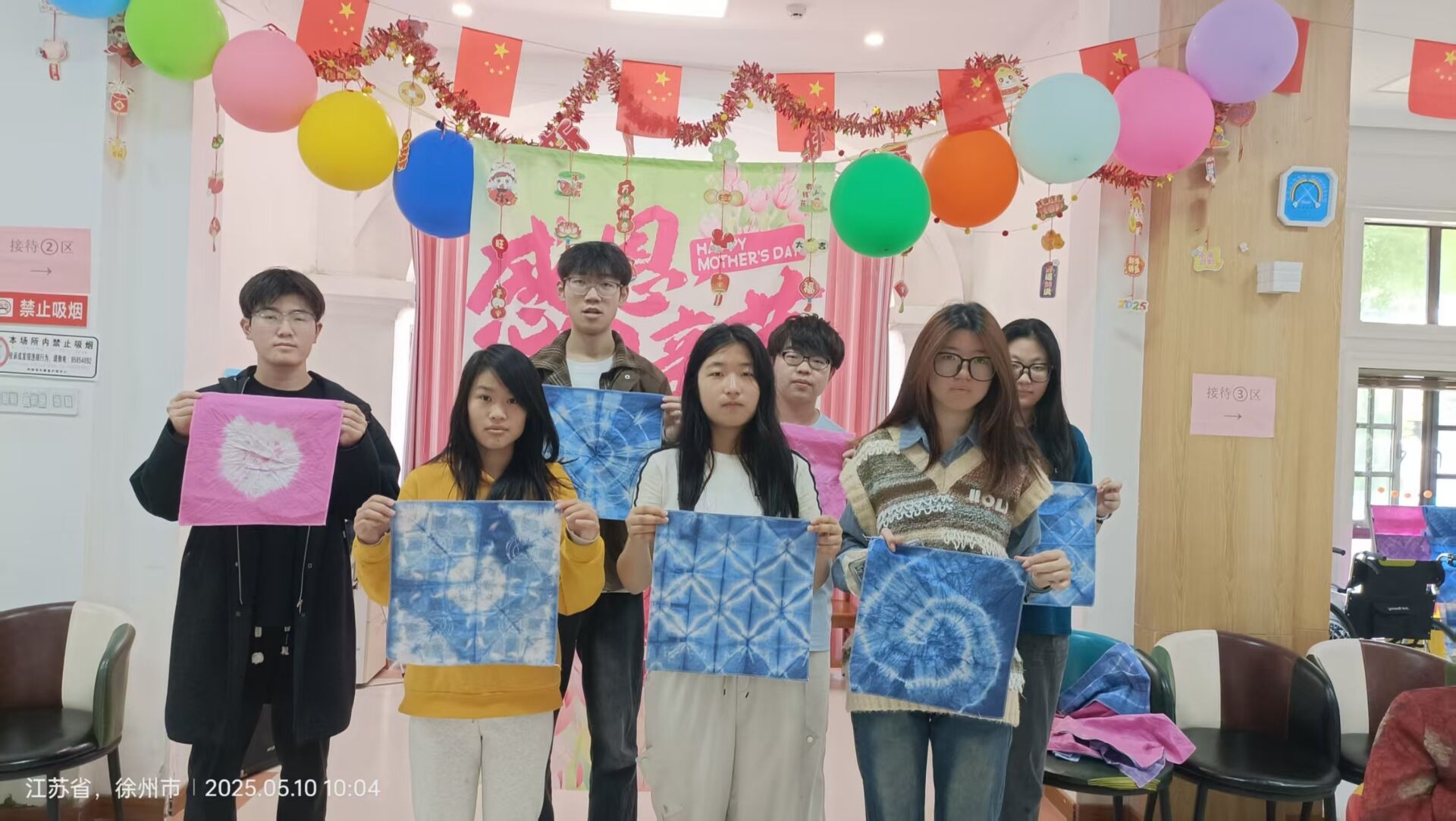 文艺部联合安全爱心服务分队在敬老院举办了 “感受传统民俗,参与工艺制作” 主题扎染体验活动,让全体老人沉浸式感受千年非遗的独特魅力。