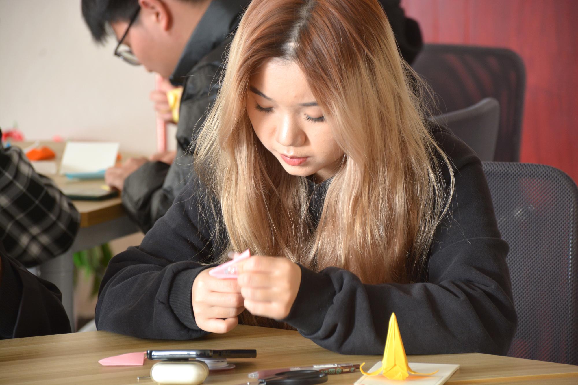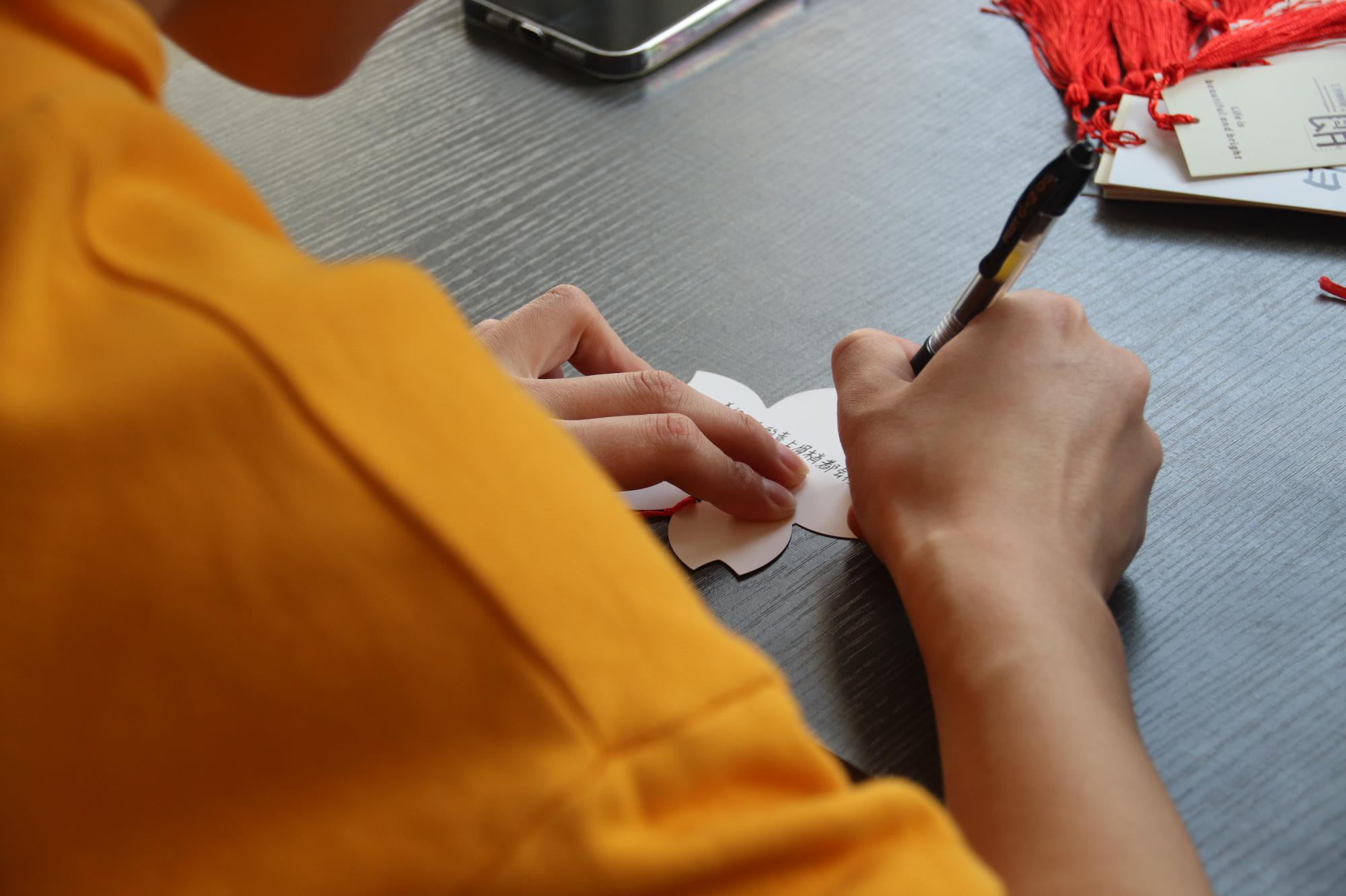 本次女生节系列活动得到了学院学生积极响应,同学们于梅三庭院和书吧登记信息后,扫码进入活动群,挑选一张自己喜爱的卡片,亲笔写下对女生真挚的祝福语句,并跟随志愿者一同将明信片挂满已泛春意的枝头,以此为女生们献上真挚的节日祝愿。树梢上的一张张卡片在阳光下格外温馨耀眼,这为男生女生提供一个相互交流的平台,更让每一个女生在这个属于自己的节日里拥有一个美好的回忆。除了制作精美卡片外,同学们于行健书院力行轩进行折纸活动,他们各自交流经验,观看学习视频,制作出各色各样、种类繁多精美的折纸礼物。大家将心中的祝福化作美好的语句和一朵朵美丽的纸花,表达了对女性最美好、最衷心的祝愿。
