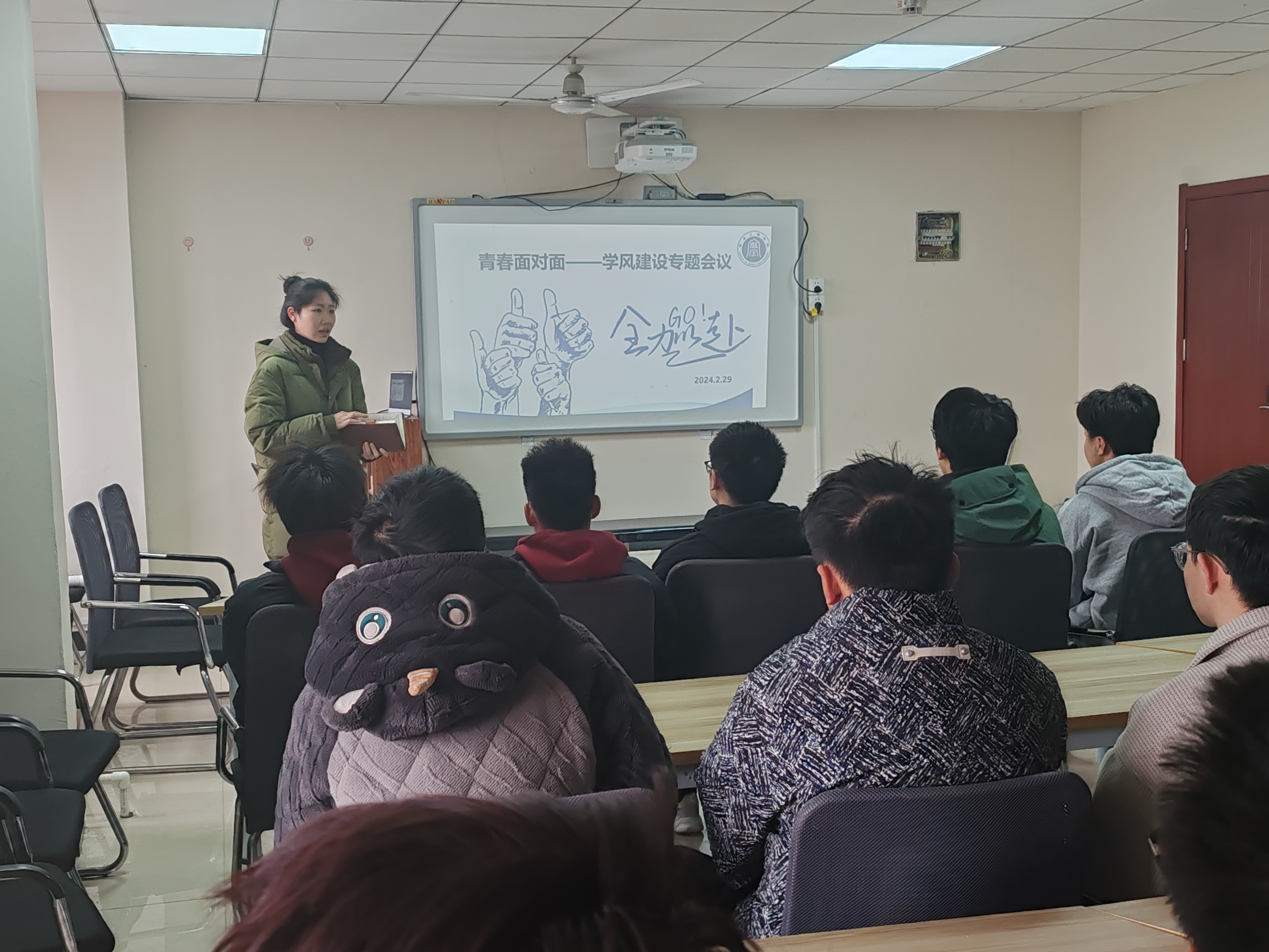 会议伊始,董映仪老师询问了同学们的弱势学科,了解导致学科成绩不理想的原因。接着,董老师强调了学习成绩的重要性以及挂科的严重性,让同学们更加清楚地认识到挂科所带来的不良影响,勉励同学们一定要重视自己的学习成绩,不要虚度光阴,将自己宝贵的时间花在更有意义的事情上。最后,董映仪老师让每位同学提出自己新学期的学习方案,并对其中的学习方案进行讨论并提供建议,让同学们能够更加明晰自己的学习计划.