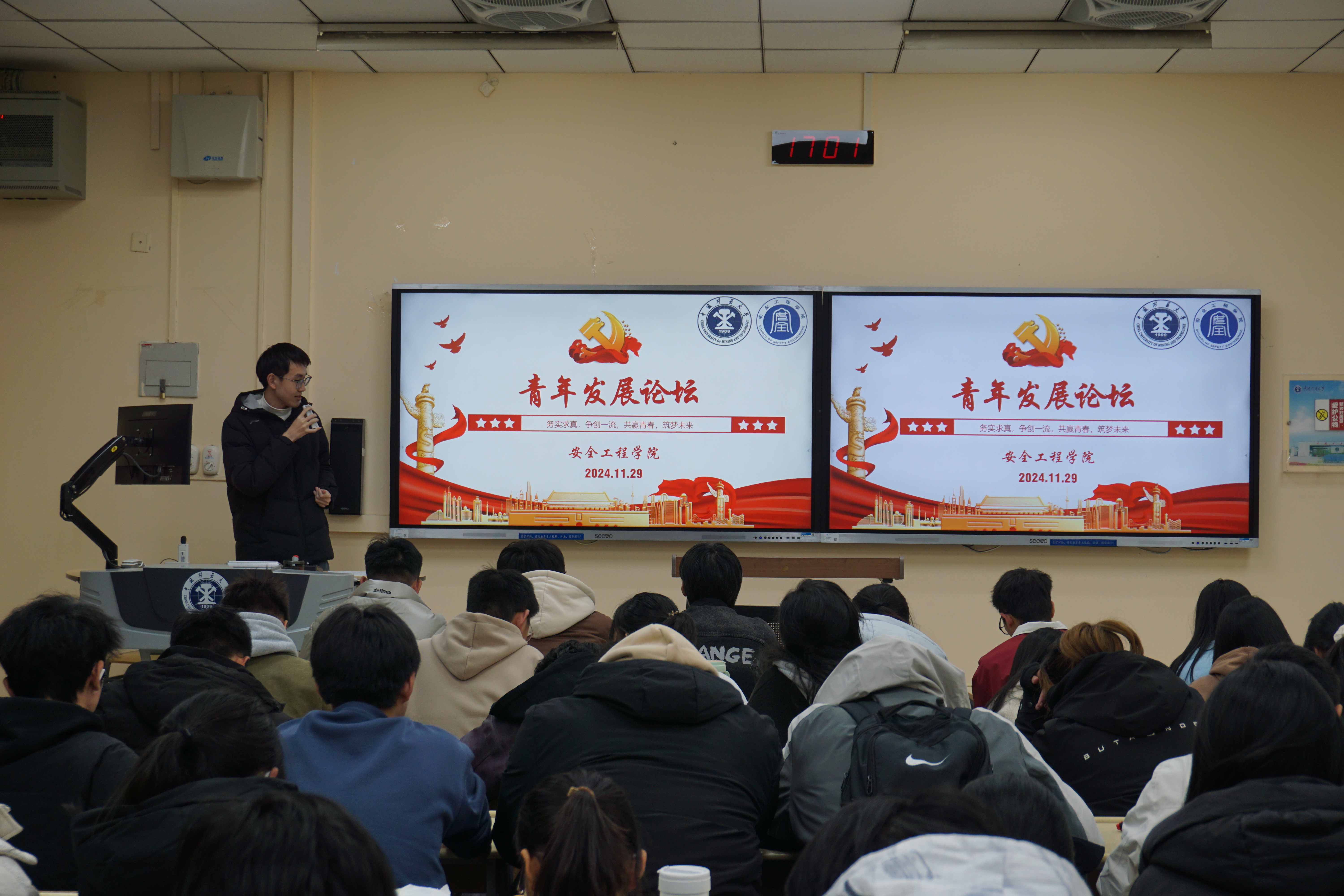 学生党员工作站于博四-B102举办主题为“务实求真,争创一流;共赢青春,筑梦未来”的“第四届青年发展论坛”活动。柯雨辰担任主持,俞嘉濠、李孟阳、李志仁、黄旭兴、王鑫、杨腾锐受邀主讲,同学们积极参加此次活动。