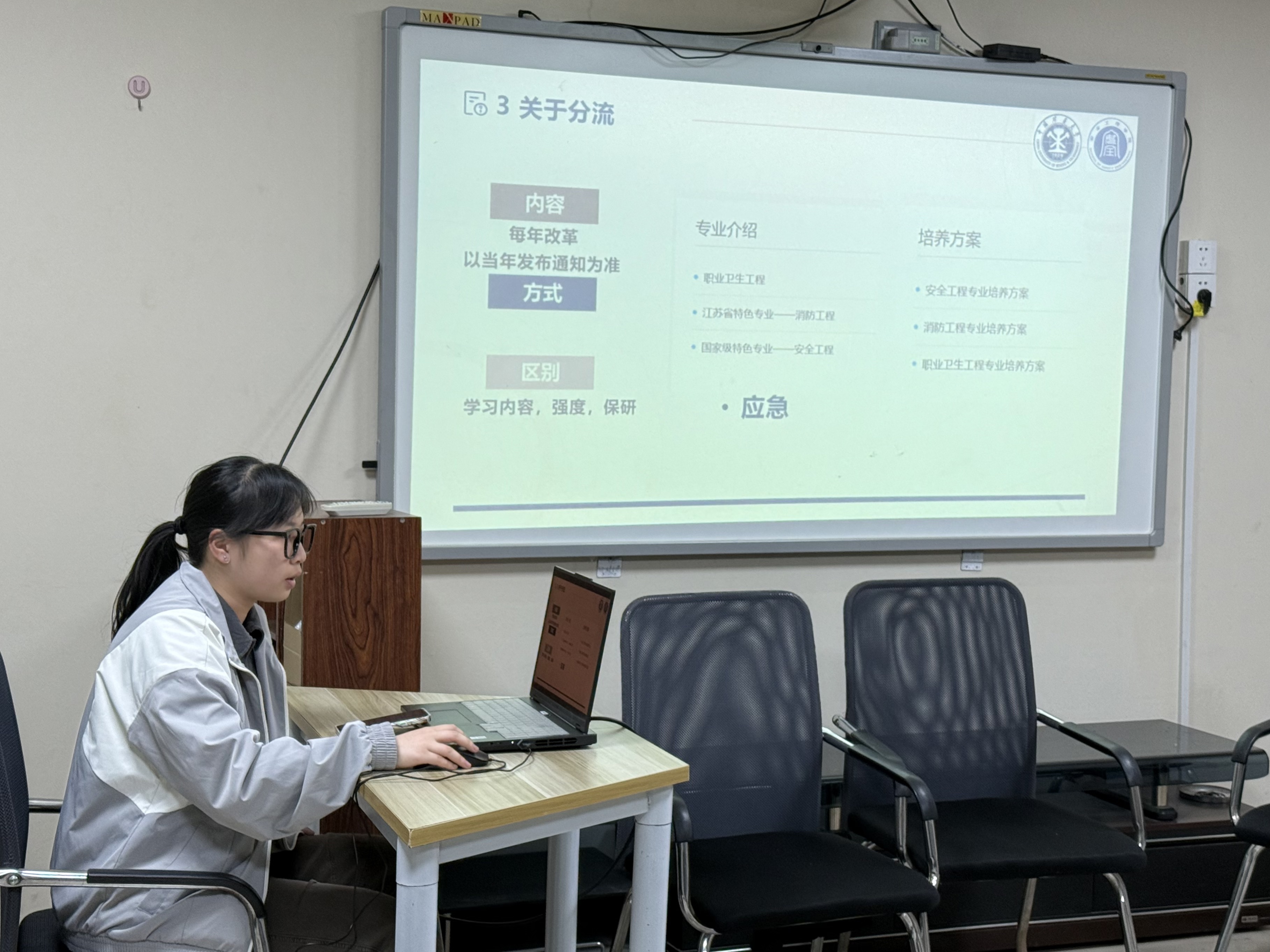 学生党员工作站于行健书院五楼力行轩开展了以“未来盲盒:拆解专业密码,绘制人生坐标”为主题的朋辈导师分享会。本次活动由朋辈导师林涵懿主讲,2024级安全科学与工程类6班全班同学参加本次活动。