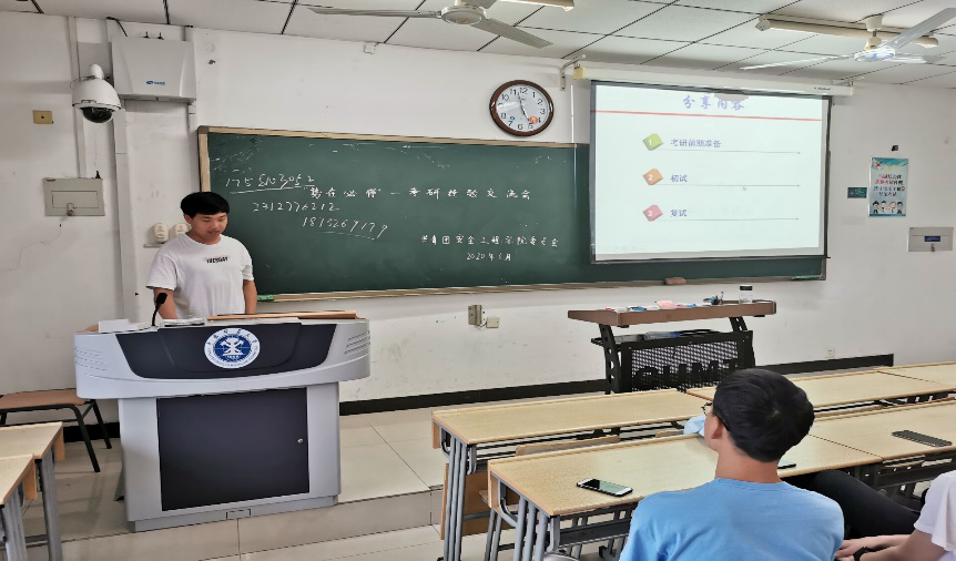 于6月17号在博四教学楼C308举行“势在必得——考研经验分享交流会”。分享会邀请团委书记刘世通和六位优秀学长代表参加。