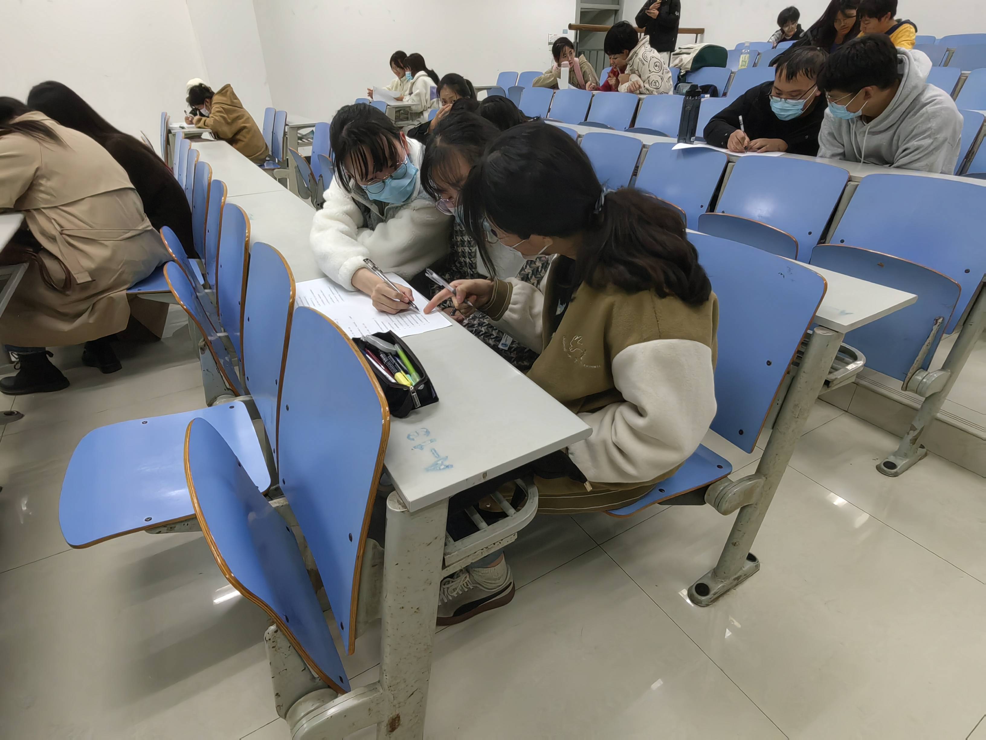 初赛分为团队赛和个人赛两部分,均为线下纸质答题。团队赛为三人一组一同答卷,个人赛为单独答卷。试题内容涉及人文地理、时事悦乐、音乐电影、诗词歌赋等多方面知识,可谓包罗万象。个人赛中,选手们屏气凝神,有条不紊的填写着答案;团队赛中,每位选手都充分发挥自己优势,与队友们紧锣密鼓地展开讨论,争取快且准地完成竞赛题。试场上的气氛十分活跃,监考员们也在认真巡查,防止作弊情况的发生。