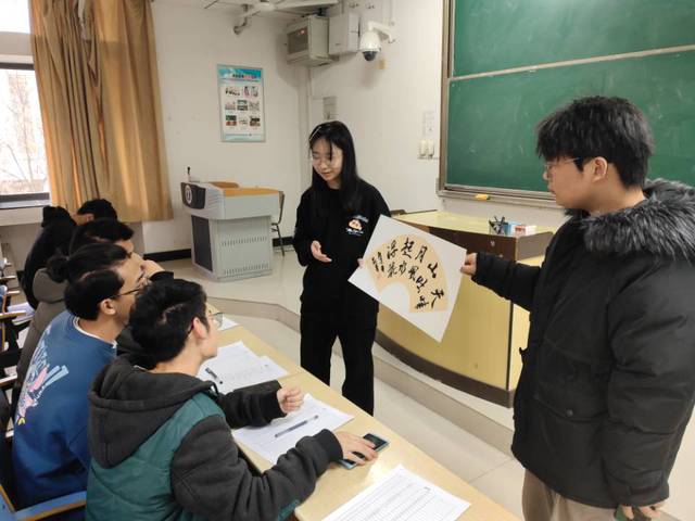 下午四点,比赛正式开始。硬笔书法组的选手们认真书写着每个字,细致雕琢笔下的每一画,横竖撇捺之中,饱含良苦用心;软笔书法组的选手更是跃跃欲试,挥毫泼墨间将对书法艺术的热情渲染在泛黄的纸上,行云流水之间,书写着青春风采。比赛最后,评委对参赛选手作品进行点评。