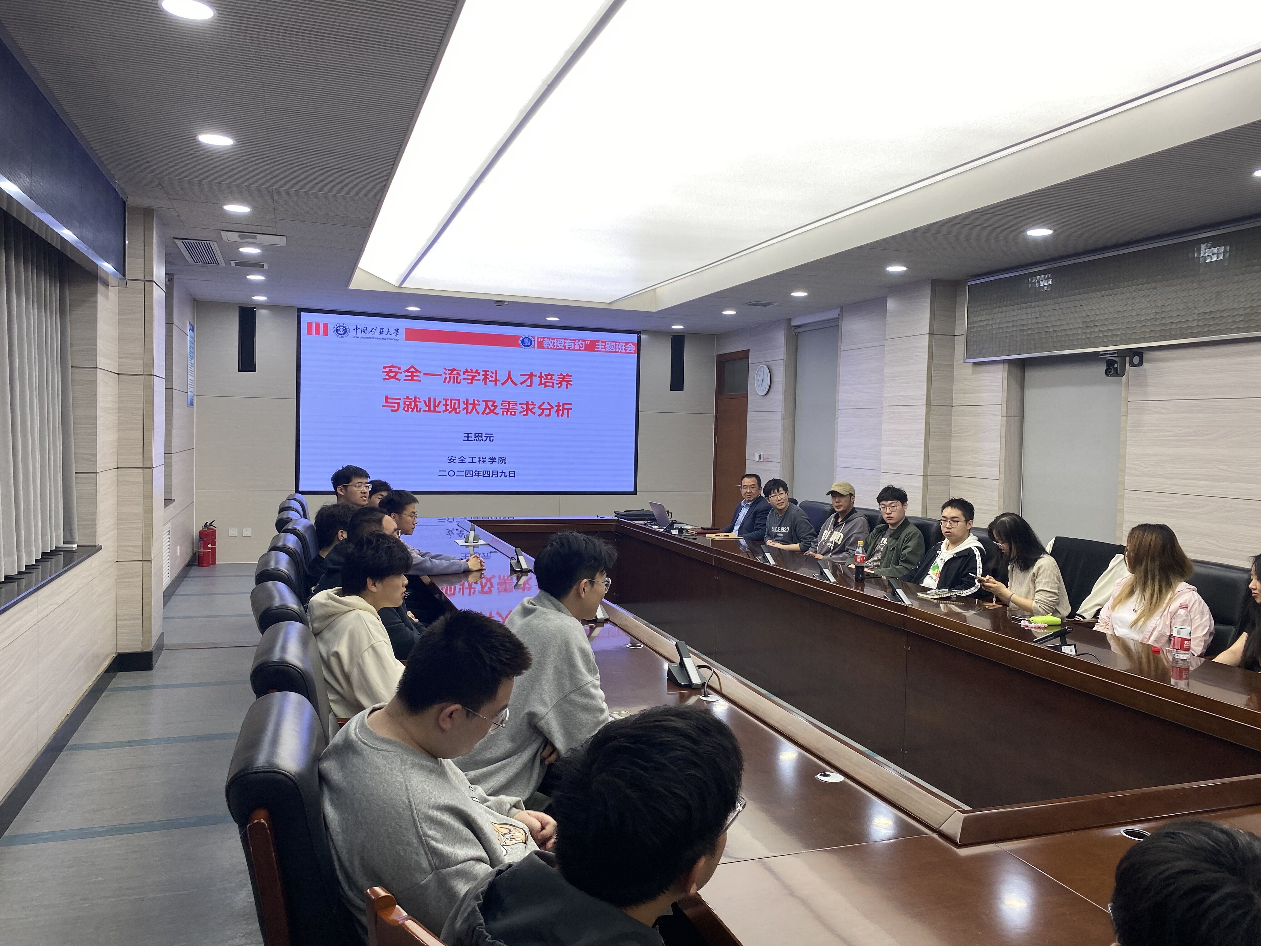 研究生教育与人才培养模式和方案,引出“思政铸魂、协同育人”的安全学科拔尖创新人才培养体系。与此同时,王教授就安全工程就业情况作了具体分析,详细介绍了安全学科毕业生的就业领域和范围。活动最后,王恩元教授与刘玉冰老师耐心地为同学们答疑解惑,就同学们提出的关于考研、保研、就业、考公等方面的问题进行了详细解答,让同学们受益匪浅。