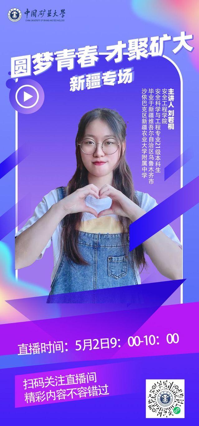 “圆梦青春·才聚矿大”五一招生宣讲会甘肃、新疆专场,其中2021级陈思睿、刘若桐两位同学分别负责直播讲解。