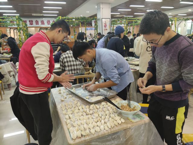 下午两点,活动正式开始。在有序排队领到面团和饺子馅后,各组分工合作,积极参与。同学们热情高涨,纷纷卷起袖子,大显身手。有的心灵手巧,包出的饺子精美别致;有的不甘落后,现学现包;更有的不满足传统饺子形状,试着包出各种花样。当一碗碗热气腾腾的饺子煮好后,师生围坐在一起品尝自己亲手做的饺子,感受着传统文化浓厚的氛围,他们脸上洋溢着的幸福笑容是这寒冬里驱散寒意的一抹暖阳。