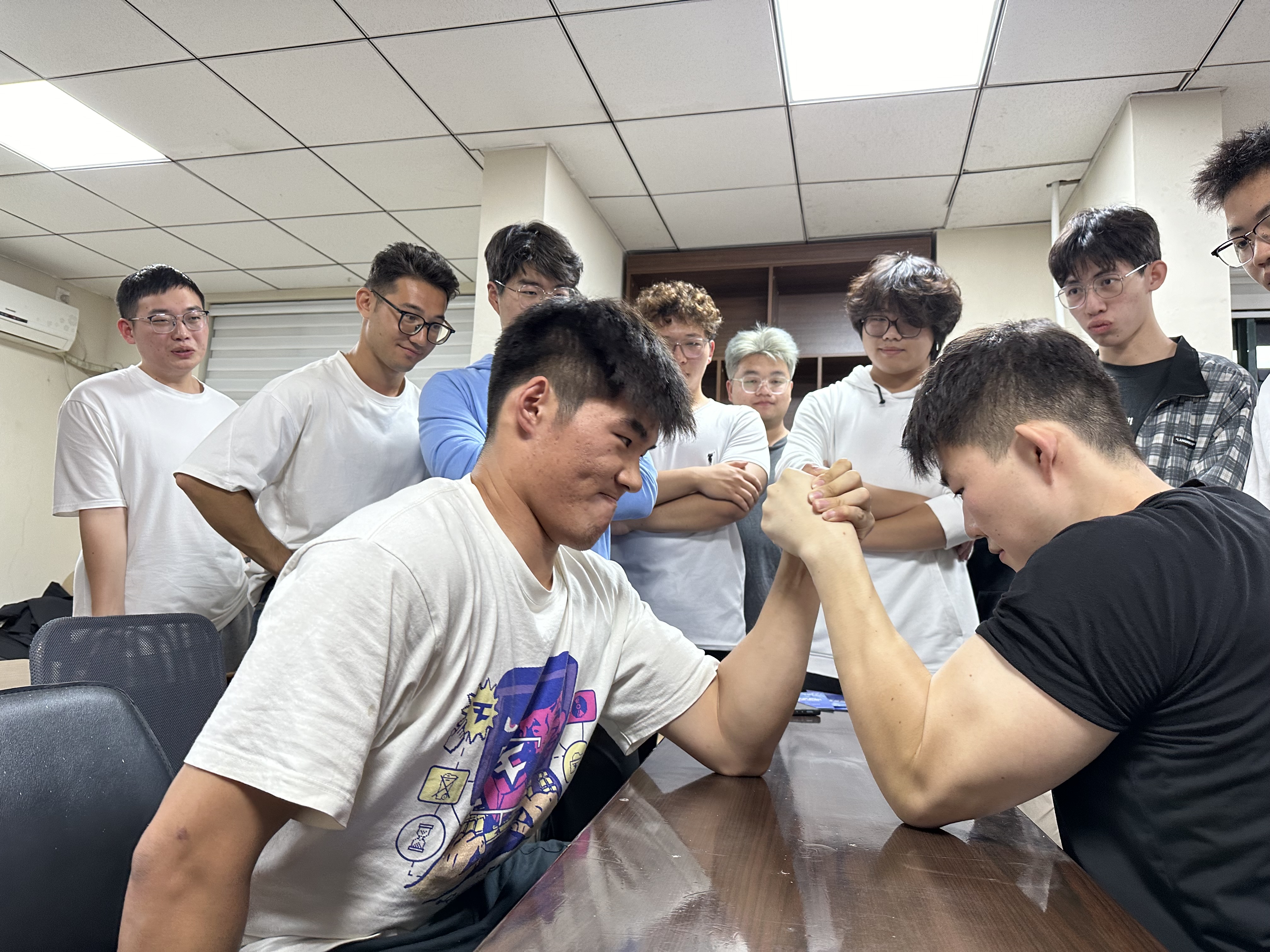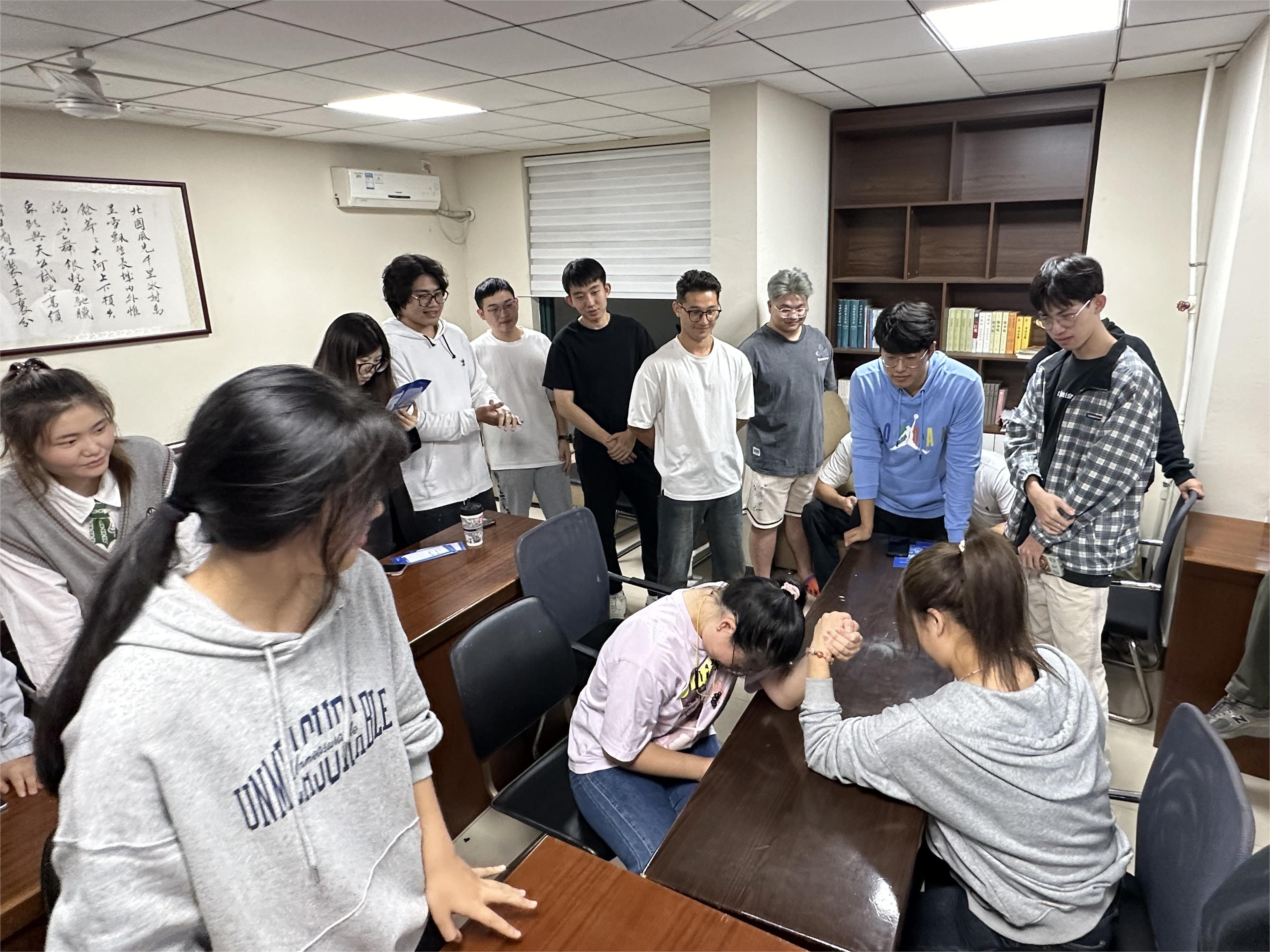 2021级在行健书院求是堂举办“掰手腕大赛”,学工办主任、2021级辅导员刘世通主持本次比赛,2021级部分学生代表参加本次比赛。