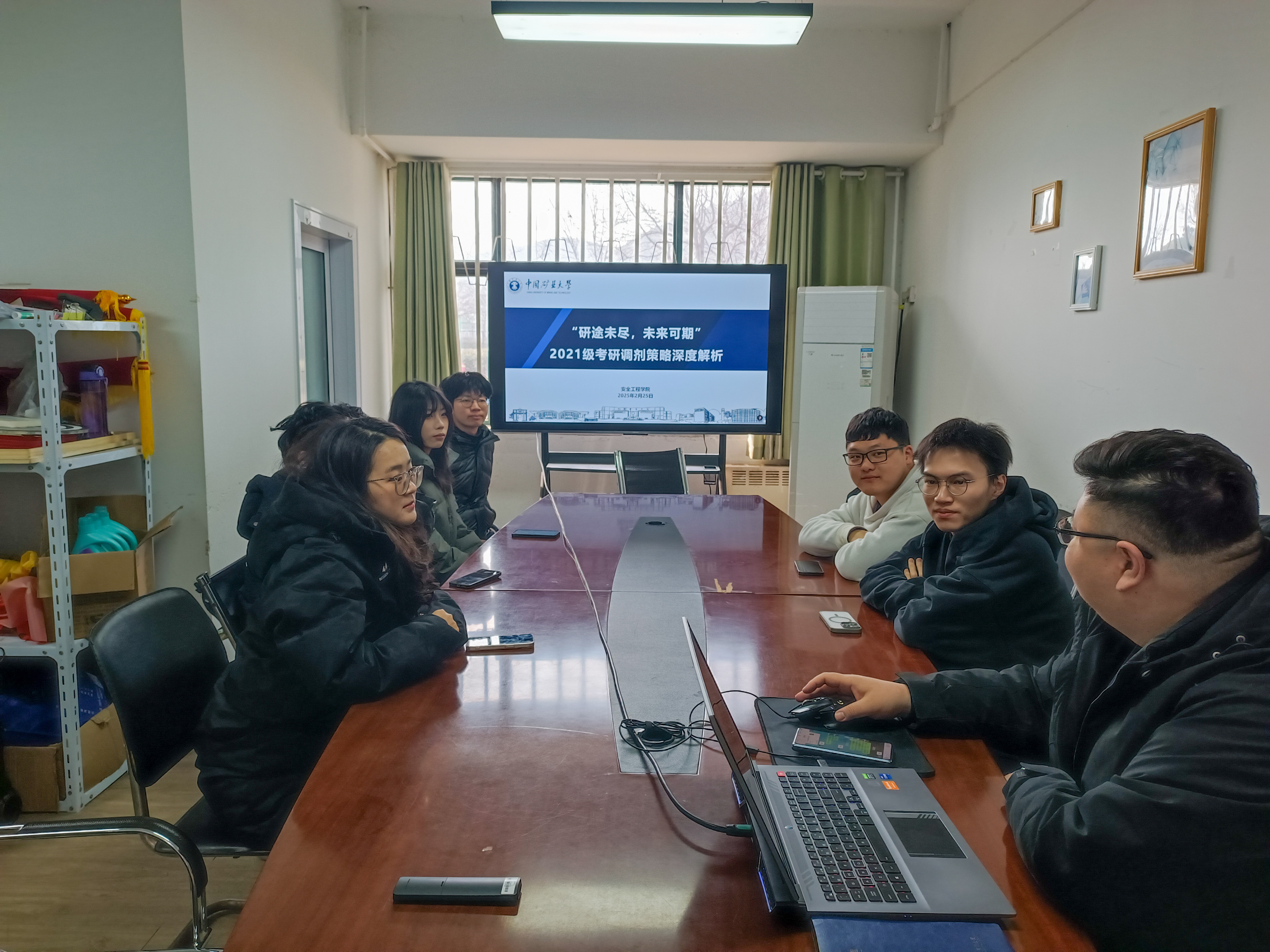 于梅三一楼会议室开展2025届毕业生考研复试调剂指导会,学工办主任刘世通、辅导员胥振老师受邀主讲本次活动。