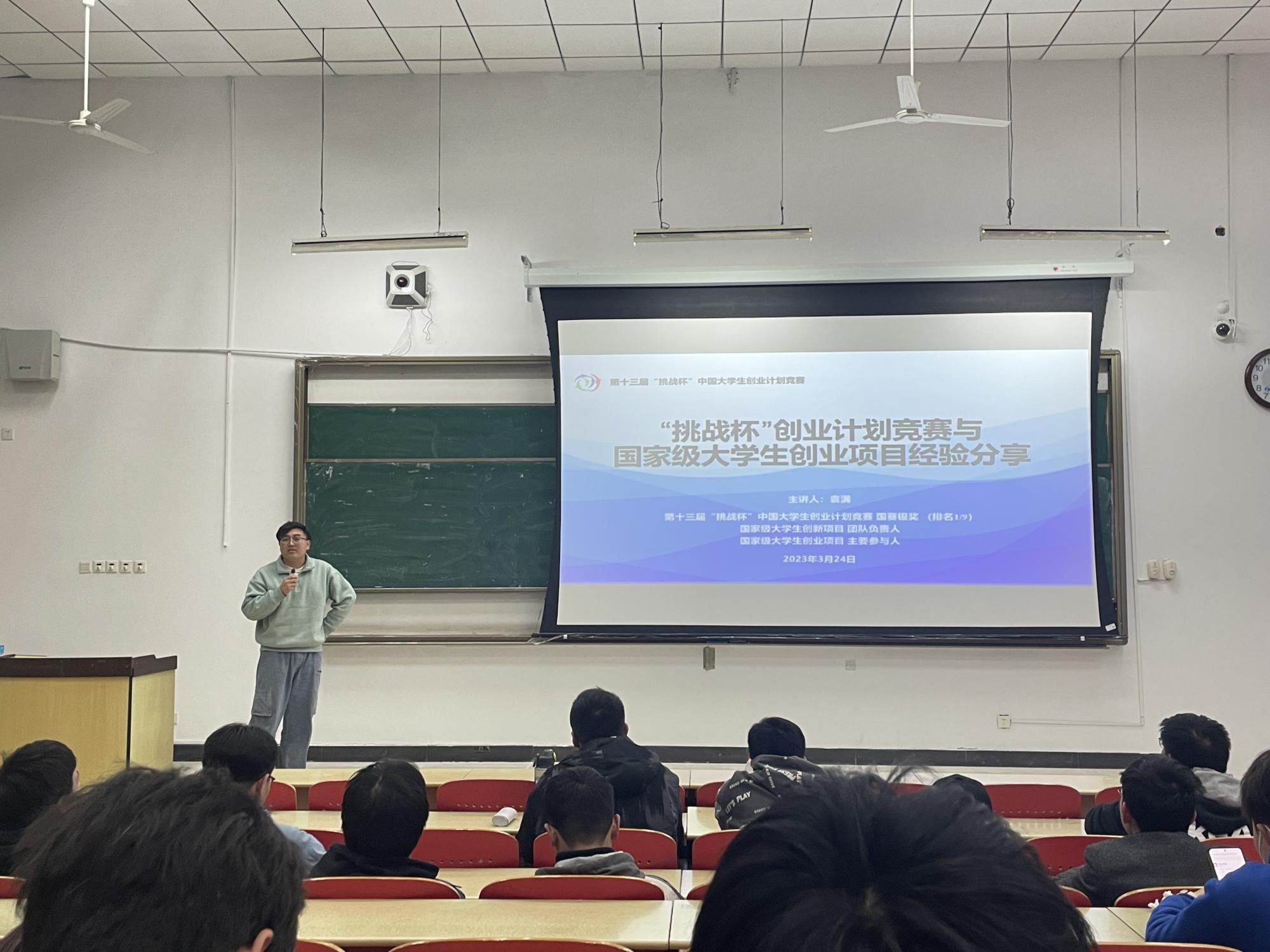 本科生于博学楼2C101参加大学生创新活动经验交流会。本次双创交流会邀请第十三届“挑战杯”全国大学生创业计划竞赛银奖团队袁满、国家级重点支持领域大学生创新创业训练计划项目主持人夏方方担任主讲嘉宾。