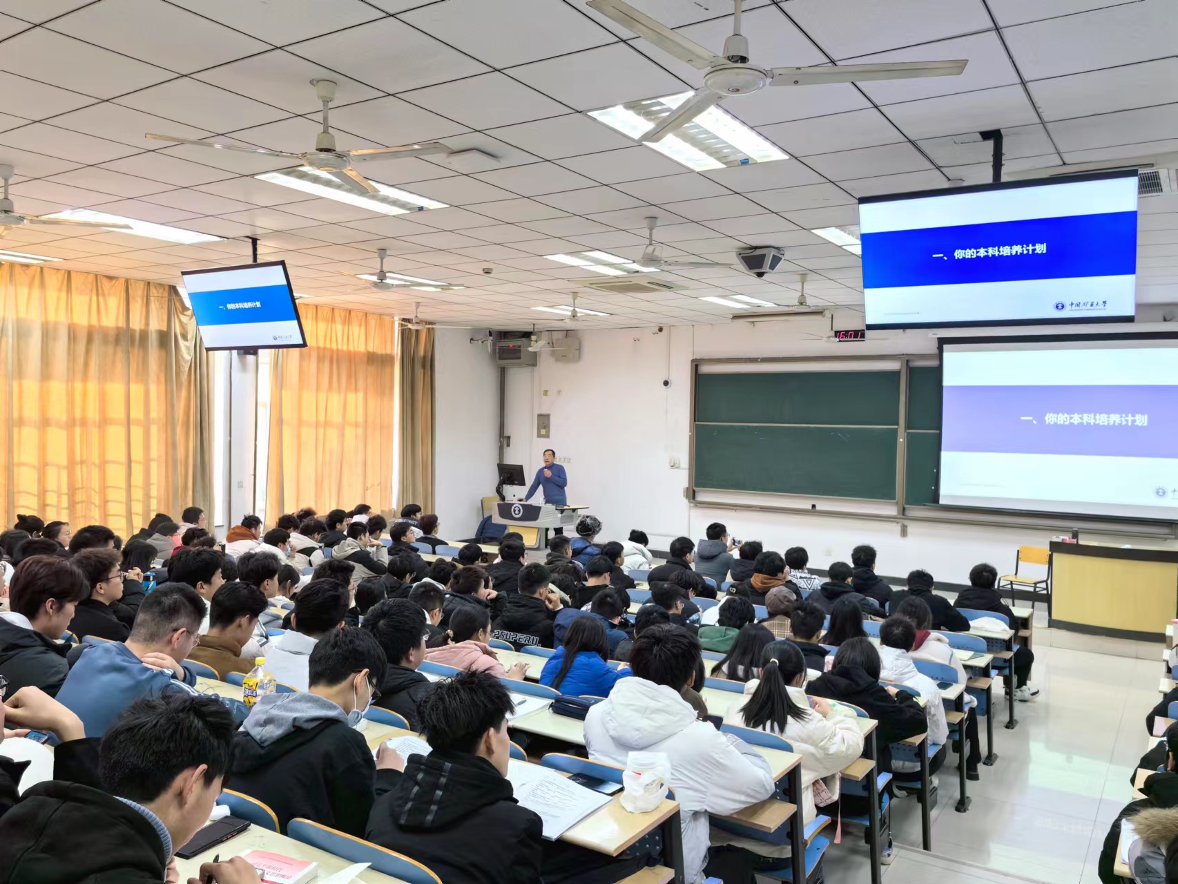 学生的优劣案例与统计数据,以此警醒同学们:大学的学习不是一蹴而就的,需要持之以恒的求学欲望与自身努力。最后,张老师强调了《学生手册》对于同学们的约束和引导作用,希望同学们严守校纪校规,为接下来的四年做好属于自己的学习规划。