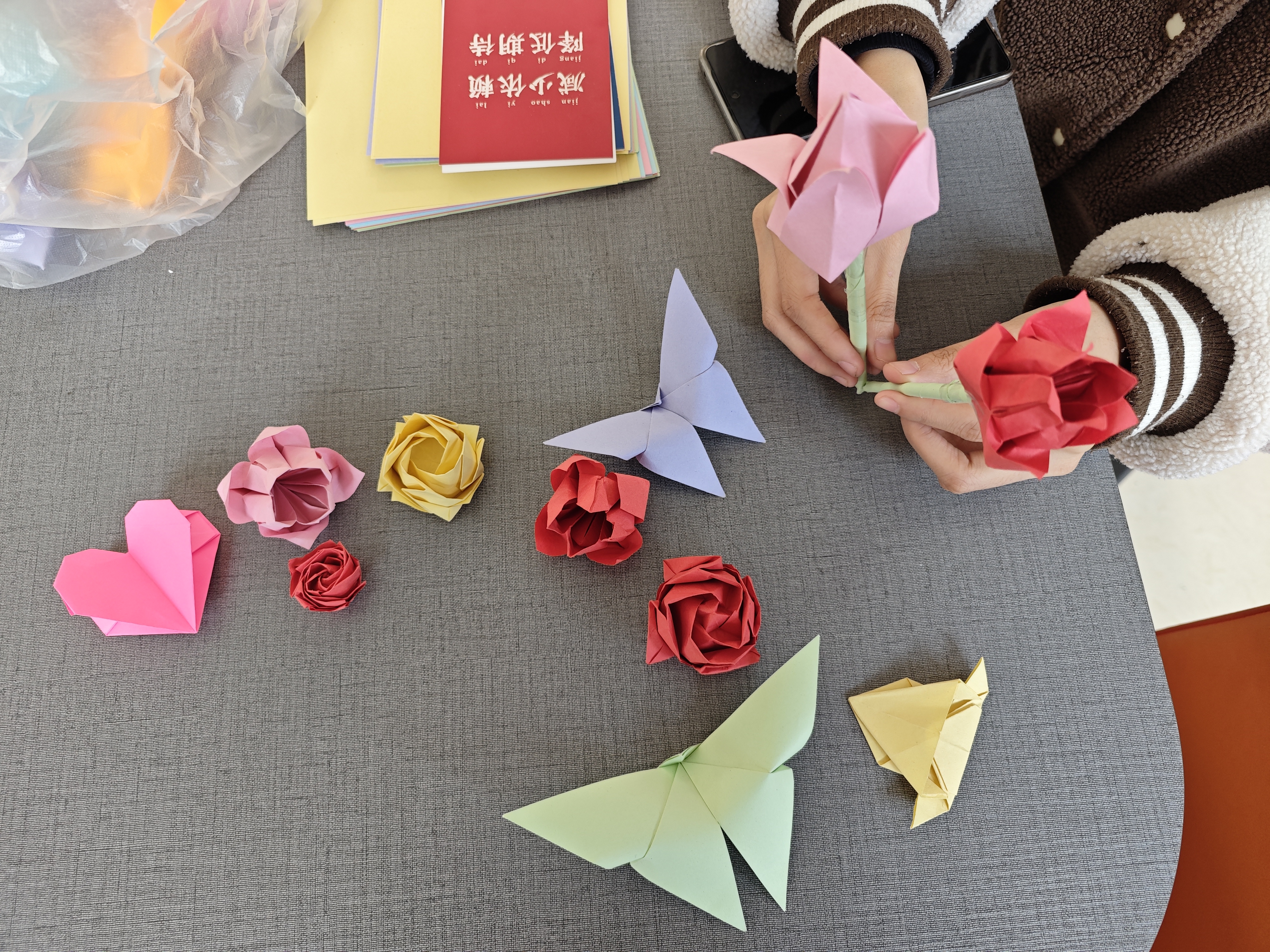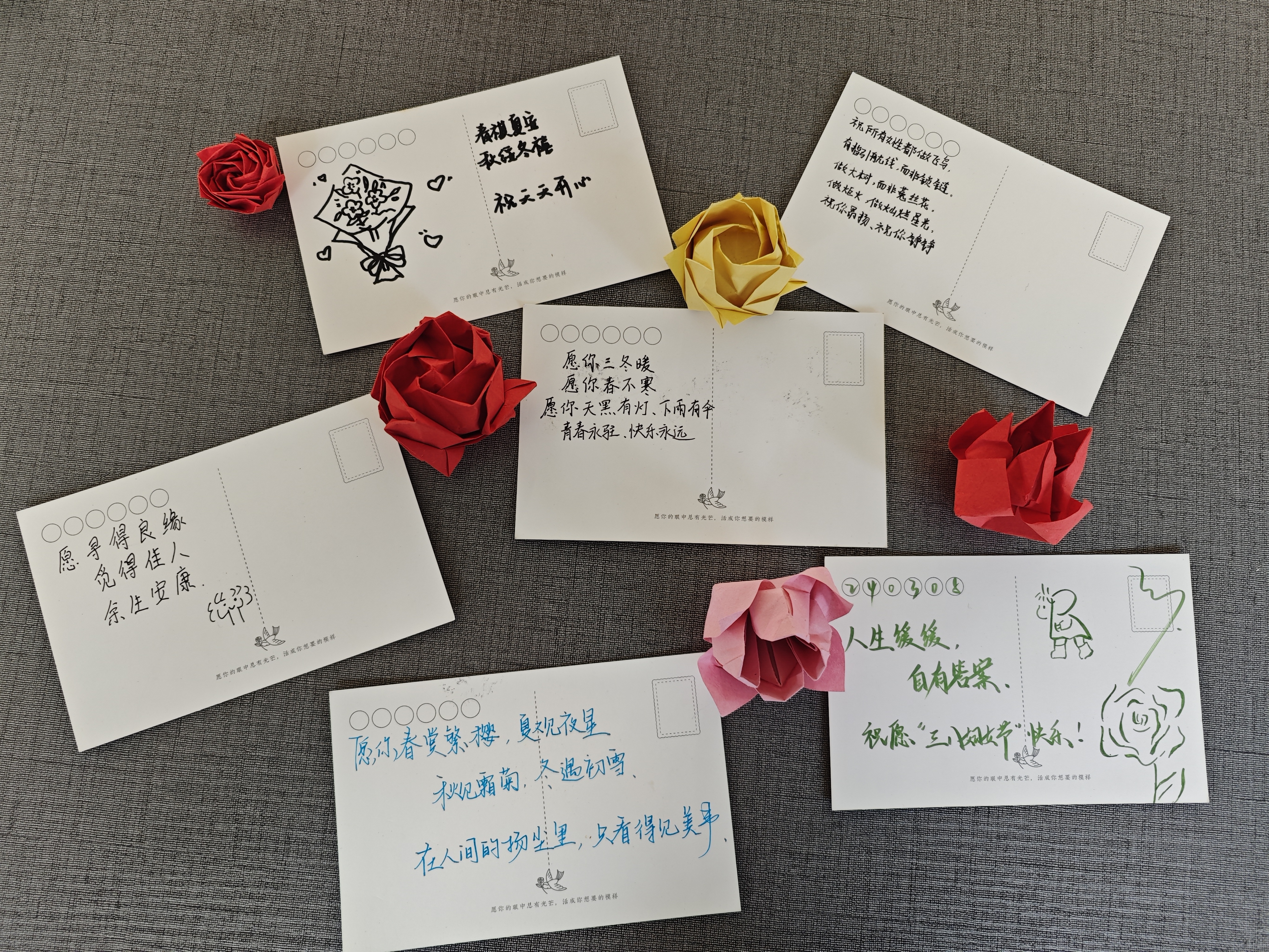 女生部在梅三一楼负责收集以上礼物并分发给学院女生。大家将心中的祝福化作美好的语句和一朵朵美丽的纸花,表达了对女性最美好、最衷心的祝愿。