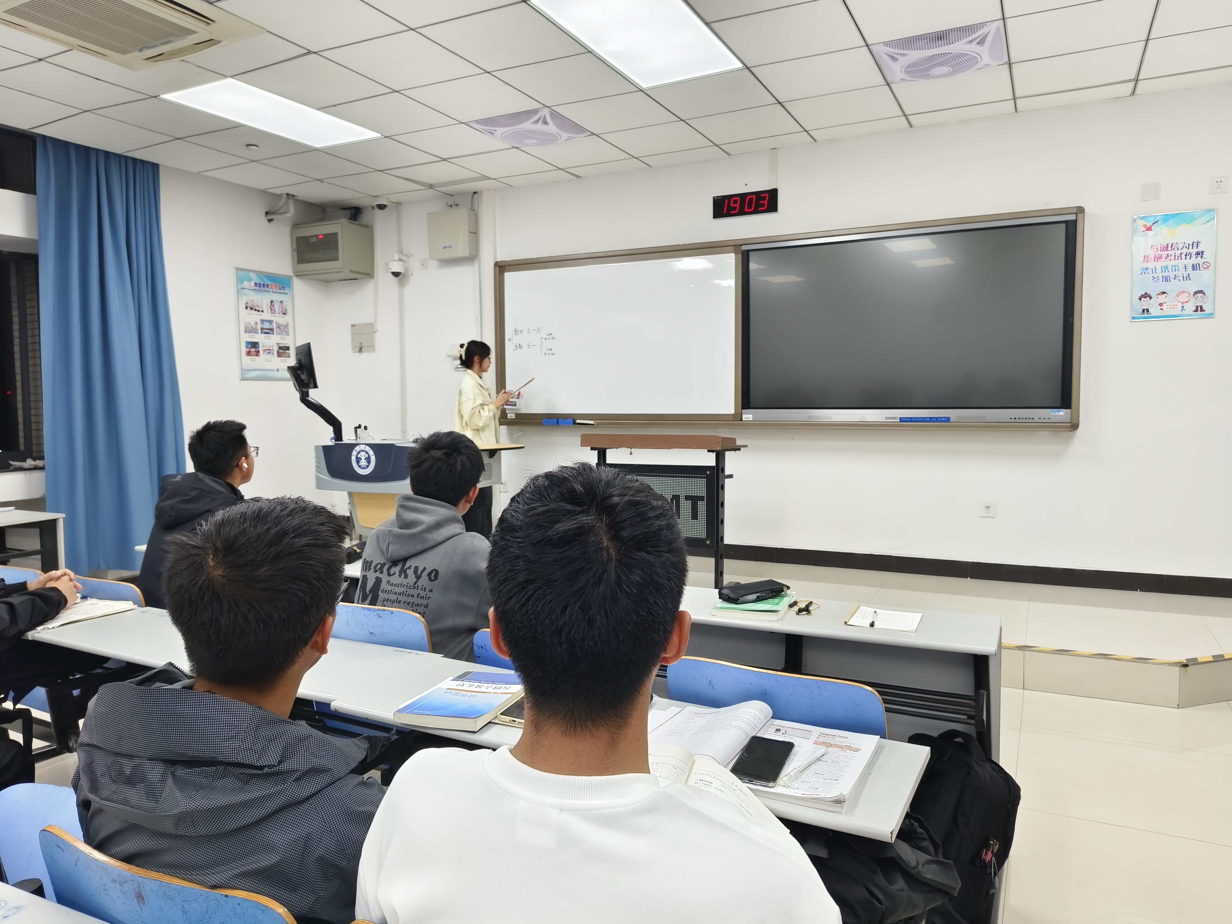 活动伊始,讲师团成员张晓强、俞嘉濠、彭川钰、陈泰为、曹心月、王坤分别对2023级各班提交的高数A1习题汇总进行了讲解,并针对同学们提出的难点疑点进行了解答。紧接着,讲师团成员还为同学们讲解了化学、思政等学科的学习技巧,分享了一些实用的复习备考经验。活动最后,学霸讲师对同学们提出的专业分流、保研、出国等问题进行了细致解答。