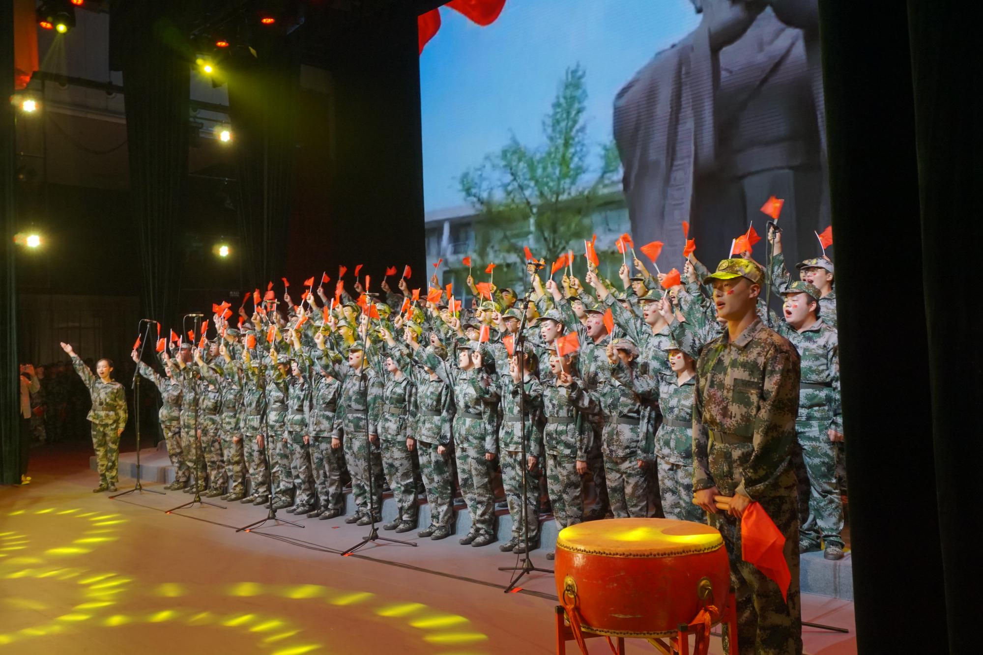 “青春筑军魂,唱响爱国情”2022级学生军训合唱比赛在明德礼堂举行,包子漫画