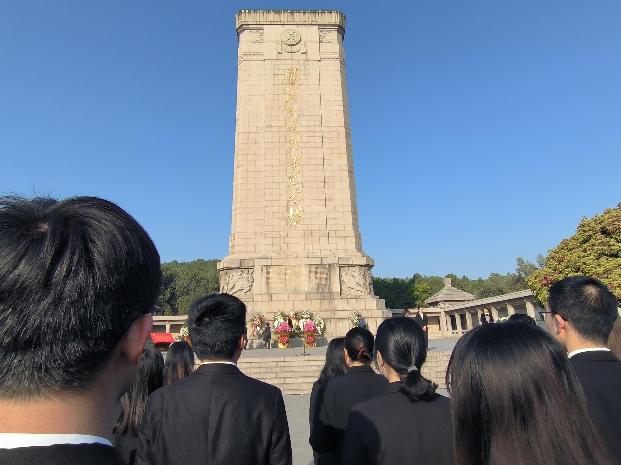 团委书记郭佳带领学院青马班学员在淮海战役烈士纪念塔开展“弘扬英烈精神,赓续红色基因”祭英烈活动。