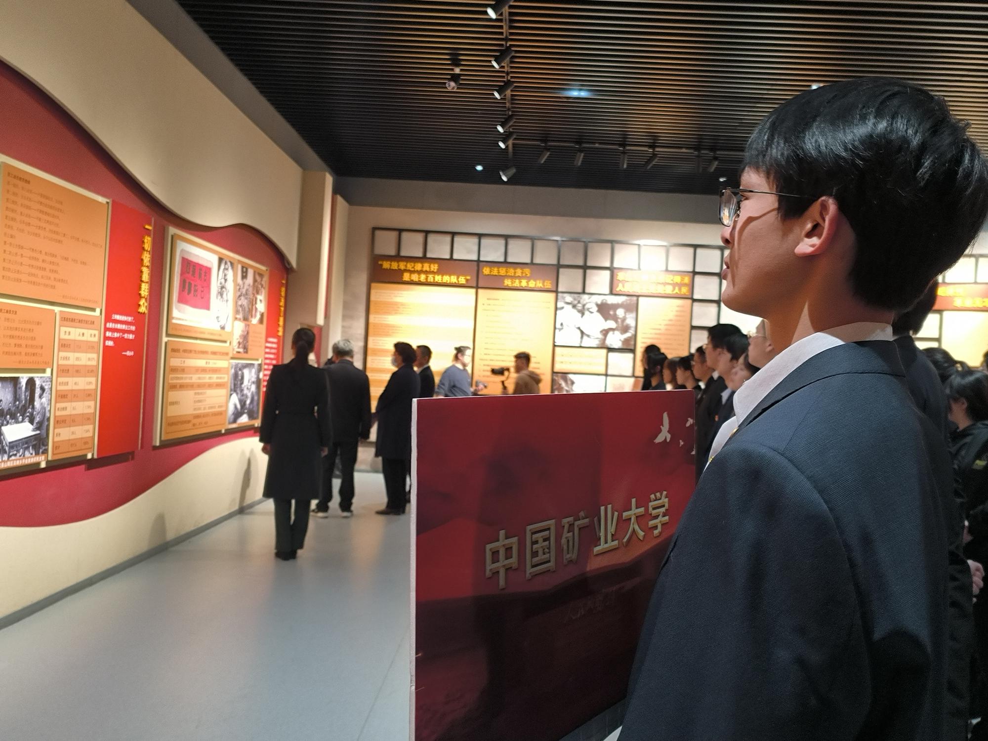 春风回暖正清明,祭奠先烈寄哀思。淮塔上,“淮海战役烈士纪念塔”镏金大字仍熠熠生辉;淮塔下,“恰同学少年,风华正茂”新时代青年正自强不息。在本次活动中,淮海战役烈士纪念塔管理中心讲解员叶宝珠为大家讲述红色故事《骑上战马打坦克》,把大家的思绪带回到了七十多年前的淮海战场,一支解放军的骑兵,为了迅速追击溃逃的敌人,在冰天雪地的黄淮平原上,上演了一场惊心动魄的骑兵追坦克的感人故事。活动现场,师生将手中的菊花敬放在塔前台阶表达追思,缓步依次绕塔一周瞻仰淮海战役烈士纪念塔,并参观了淮海战役纪念馆,深切缅怀革命先烈。淮海战役中形成的“敢打必胜、科学决策、勇于担当、团结协作、依靠群众”的革命精神,是党和人民军队在革命战争年代为后世留下的宝贵精神财富。