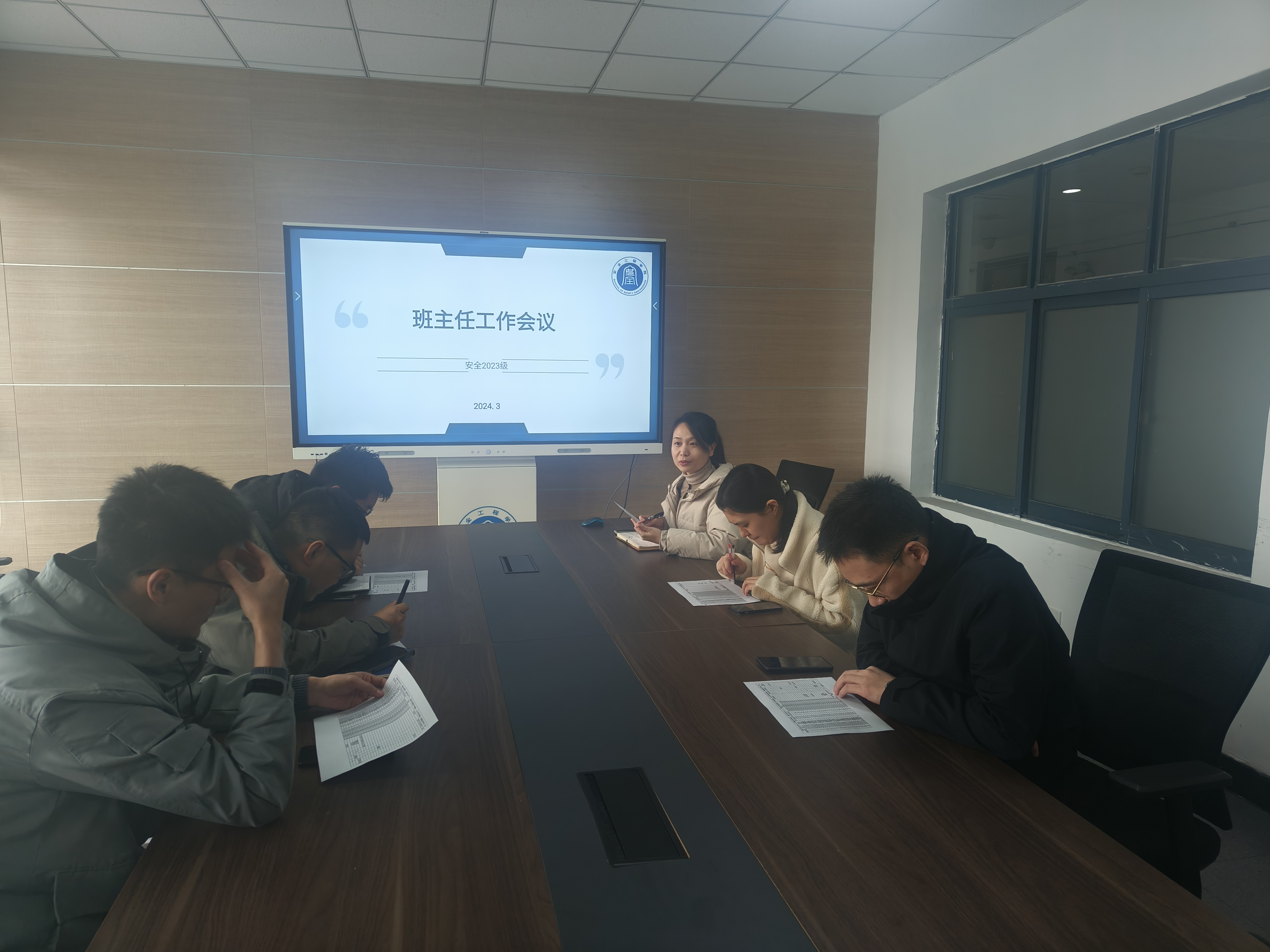 于矿科A317召开2023级班主任工作交流会,2023级各班行政班主任参加会议,辅导员郭佳主持本次会议。
