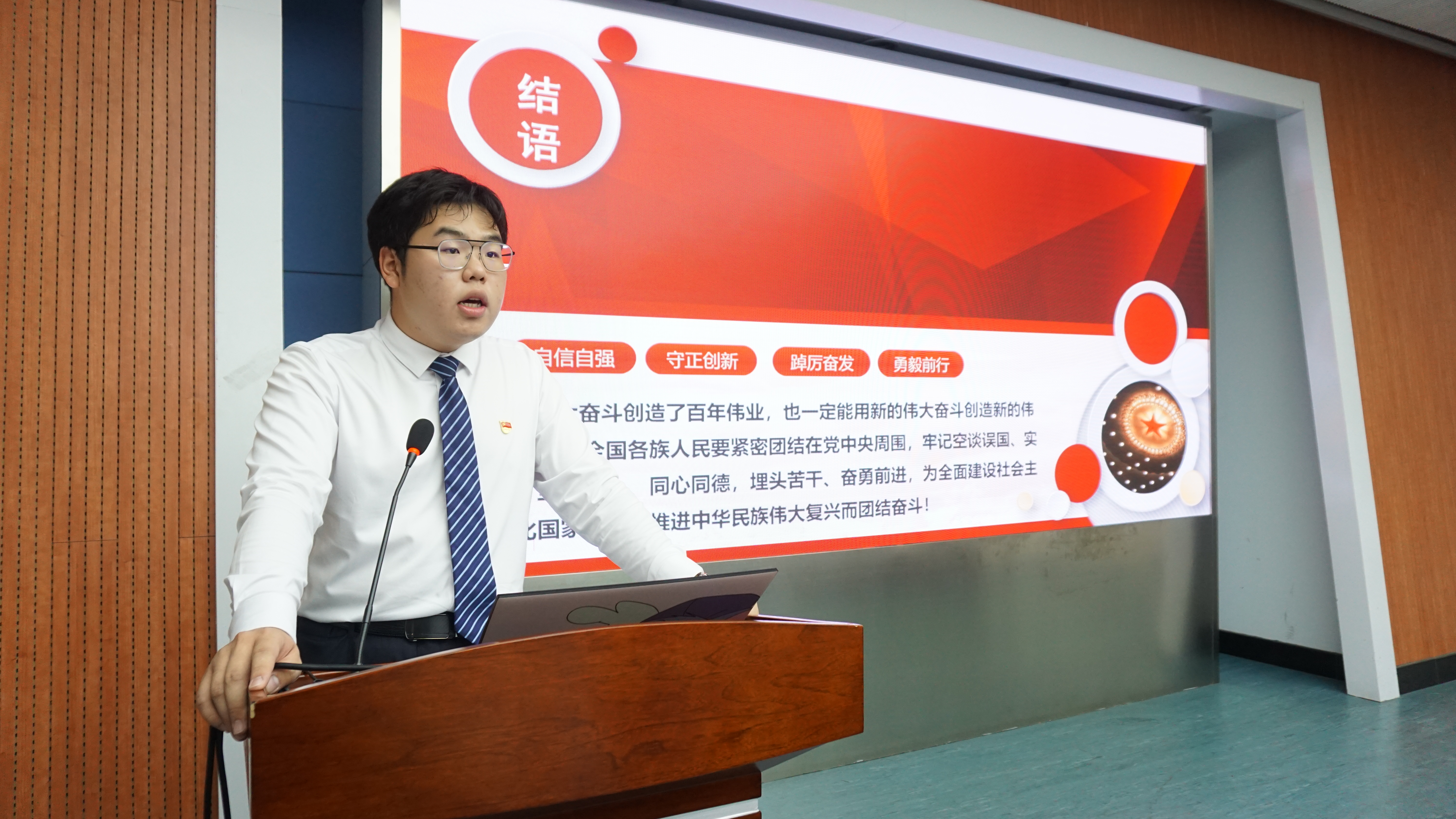 演讲结束,刘世通老师点评了以上学生的发言,并提出党站“12345”一站式工作育人体系,即以“把优秀学生培养为党员,把学生党员培养为一流拔尖创新人才”一个目标为中心,依托“学生党员工作站与知行社”两个抓手,围绕“学生党员、发展中的党员、团员群众”三个学生群体,做好“思想引领、能力培养、学风建设、社会实践”四个结合,实现“思想觉悟到位、学科认同到位、示范引领到位、综合素养到位、志愿服务到位”五个到位。