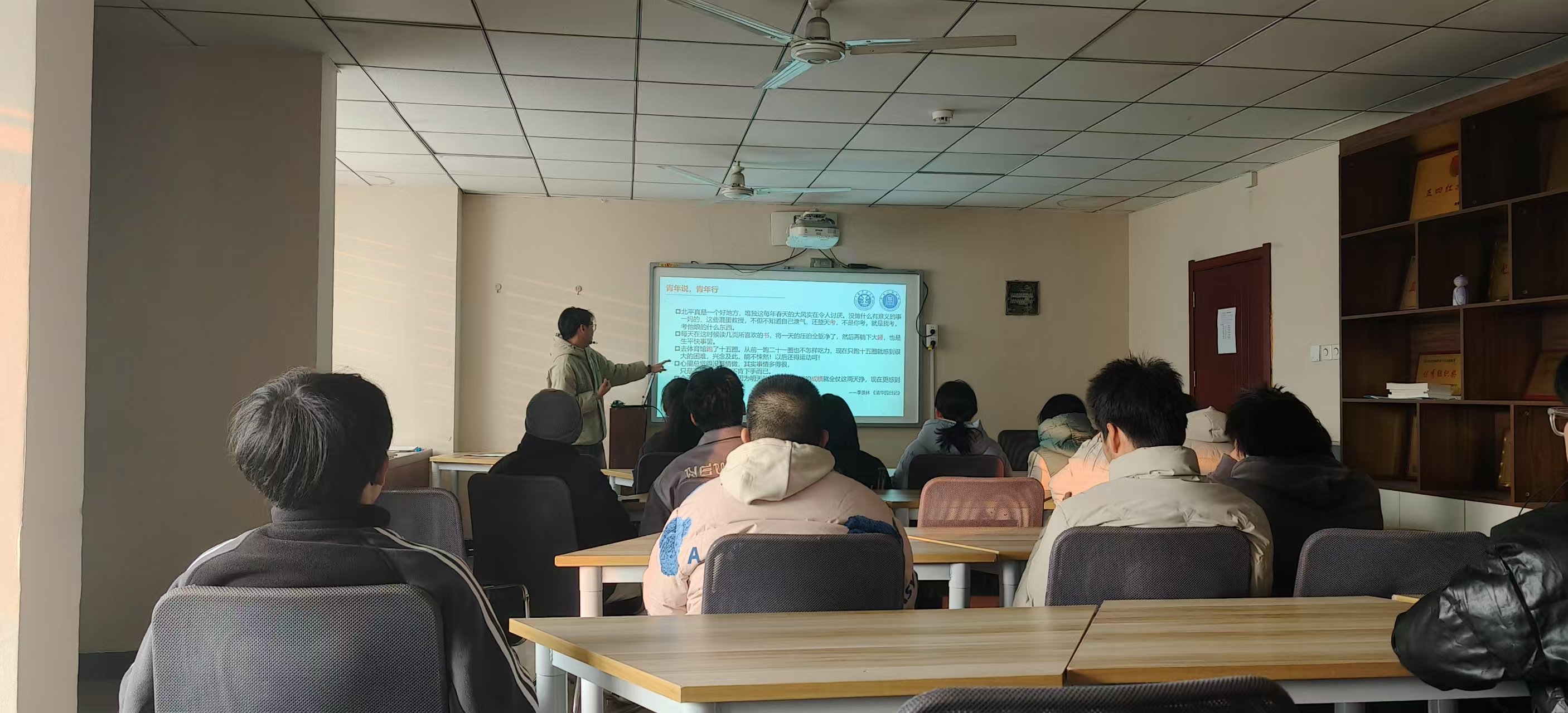 学生党员工作站于力行轩开展以“志存高远,追求卓越”为主题的“青年说,青年行”活动。汪鑫同学受邀主讲,20024级3班全体同学参加此次活动。