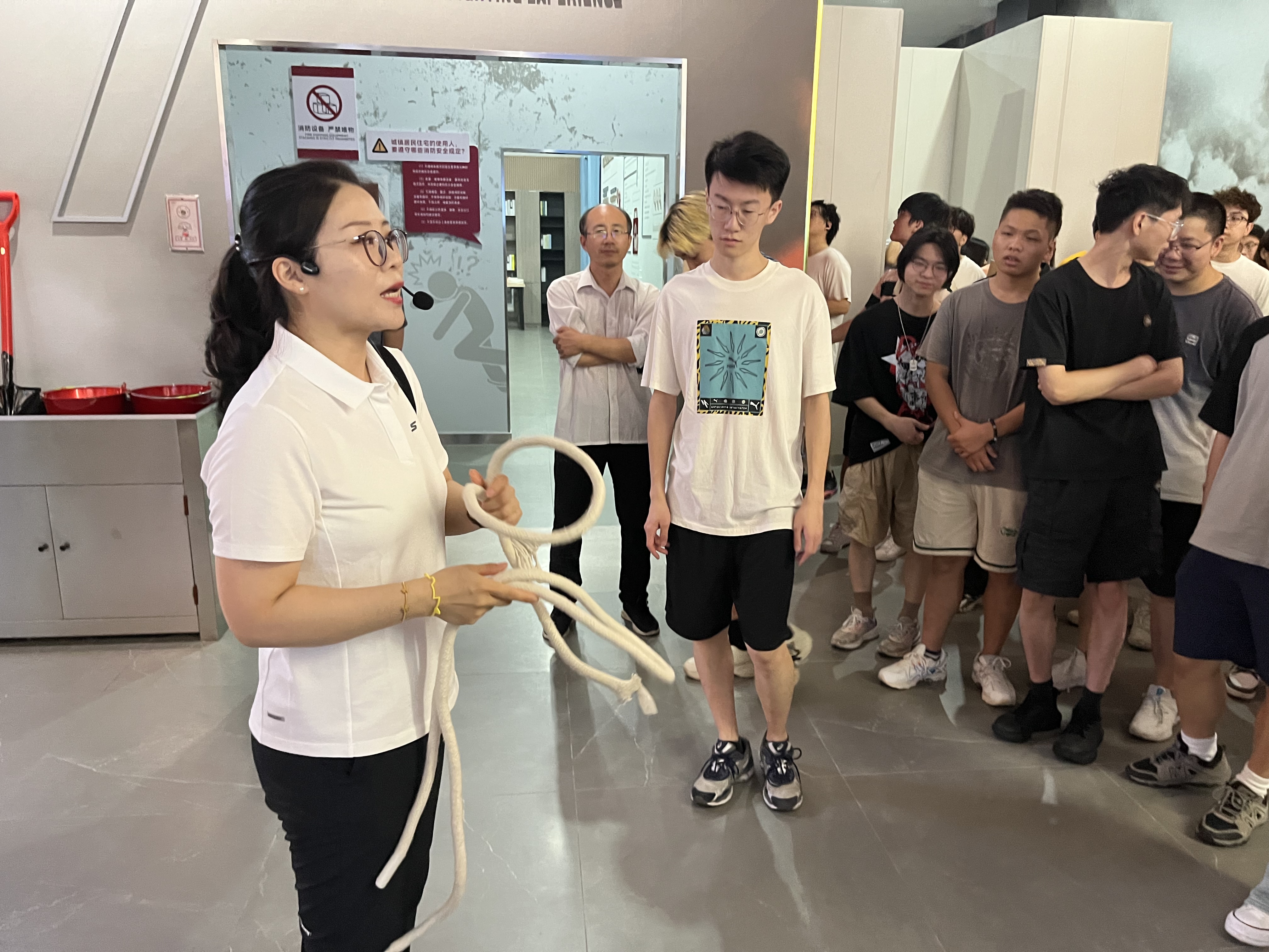 实践伊始,带队老师对实践活动进行细致的讲解介绍,随后经纶学校老师为同学们讲述了危险作业应知应会的知识,重点提及了动火作业、高处作业、有限空间作业和十二项重点作业的相关法律法规、安全隐患、审批流程等知识。实践团成员认真学习了职业病防治法的相关法律条款、危险因素和案例分析等。接着,经纶学校老师向同学们讲述了爆破安全技术以及井下爆破等知识,重点讲述了爆破前的准备工作、各项分级审核制度以及爆破的工序和影响因素。讲解员带同学们参观了安全警示馆,通过各类互动设施帮助实践团成员更好了解各类重大灾害的危害以及相关情景下的自救以及救助操作。随后,在专业工作人员的带领下深入井下实训基地,依次学习了提升、供风、供水、通风系统知识,对井下工作环境、开采器械、任务流程有了更加直观的认识。实践团基于前几日的学习,进行了安全生产六大避险系统的观摩活动,详细学习了井下联络、爆破作业、应急避险的相关措施,并进入地下硐室深入了解了其内部构造、设施安排与自救器的设备使用。观摩结束后,实践团成员们开展了组织研讨,分享了自己的学习过程中的心得体会,对相关知识有了更系统的认识。